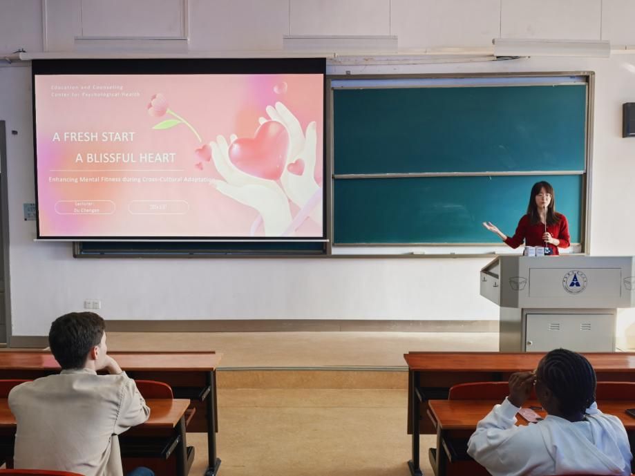 (通讯员 朱雅婕)11月7日下午,国际教育学院在南附楼302开展11月国际学生心理健康专题讲座。讲座以“幸福‘心’篇章:跨文化适应中的心理健康”为主题,围绕文化冲击、学习压力、人际交往、生活适应等关键问题展开,通过生动真实的案例和科学实用的心理调适方法,帮助国际学生拓展心理健康理论知识,掌握有效的识别方法和应对策略。讲座由国际学生辅导员朱雅婕主持,心理健康教育咨询中心专任教师都城安主讲,100余名国际学生积极参与其中。