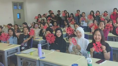 (通讯员 吴秀丽 龙又珍)剪纸艺术映华彩,国际学子共传情。2024年11月14日上午,阳光明媚,国际教育学院对外汉语教研室在文澴楼317教室迎来一场生动有趣的中文课堂文化实践活动。此次中文课堂文化实践活动由对外汉语教研室龙又珍老师策划组织。活动以中国传统剪纸艺术为主题,吸引了来自泰国、越南、哈萨克斯坦等多个国家的五十多名国际学生参与,共同体验中国传统文化的独特魅力。