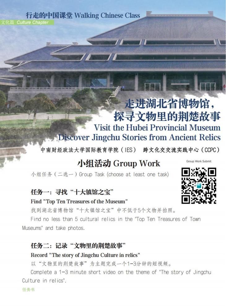 (通讯员 朱雅婕)荆楚文化璀璨夺目,中华文化博大精深。为深化我校国际学生对荆楚文化了解,增进中外学生沟通交流,11月14日下午,在国际教育学院指导筹划下,跨文化交流实践中心(Cross-culture Communication Practice Center)组织开展了“行走的中国课堂-文化篇”实践活动。近120名中外学生走出校内课堂,走进湖北省博物馆,探寻文物里的荆楚故事,切身感知荆楚文化的深刻内涵和中华文明的丰厚底蕴。
