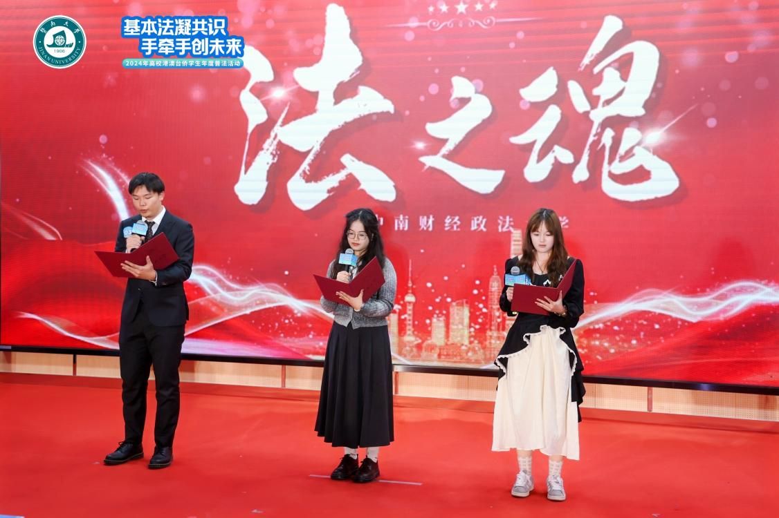 新闻网讯(通讯员 徐家桐)2024年12月16日,由暨南大学承办的“2024年高校港澳台侨学生年度普法活动”在暨南大学番禺校区图书馆负一楼邓祐才学术报告厅顺利举行。我校港澳台学生王相平、杨丞裕和徐瑞希组成的参赛团队,经过激烈的比拼,最终获得此次活动的一等奖。