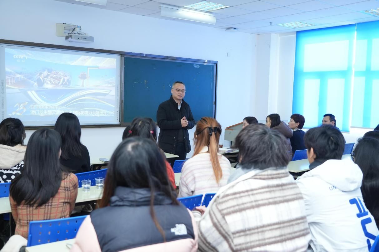 12月20日上午,我校积极组织港澳台及内地(大陆)学生通过多种途径收听收看庆祝澳门回归祖国25周年大会暨澳门特别行政区第六届政府就职典礼,认真学习领会习近平总书记重要讲话精神。校党委副书记陈狮及学生代表一同参加了集中收看活动。