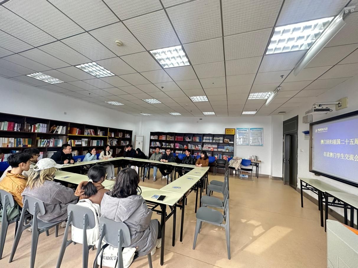 12月17日下午,文澴楼6楼东大厅内暖意融融,庆祝澳门回归祖国25周年师生交流座谈会在此举行。校党委书记侯振发与20名港澳台学生代表共聚一堂,共庆澳门回归祖国25周年的喜庆时刻。