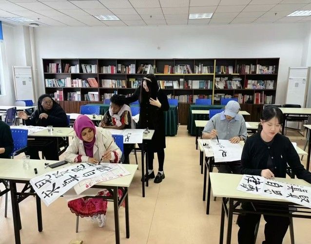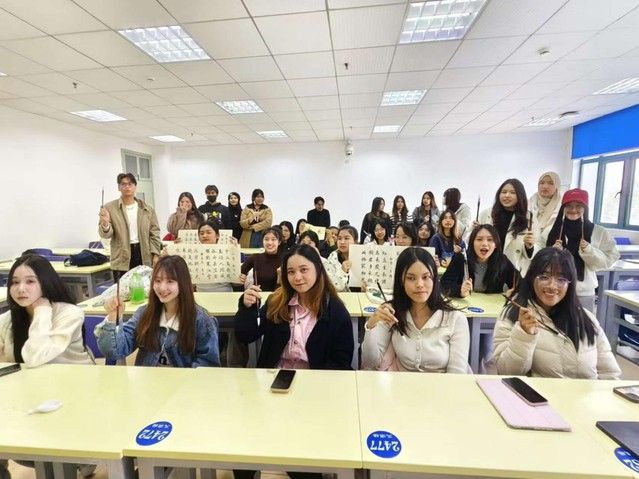 (文:牛长伟;图:龙又珍、蔡苗、高杨艺琳、高林凯)毛笔作为文房四宝之一,是中国书写文化的代表,承载着中国人独特的文化记忆、历史情怀和审美情趣。在2024-2025学年的中国文化、中国书法、中国绘画课程中,国际学生对毛笔的认识从好奇到好玩,从好玩到好学,从好学到爱好,深刻感受到了毛笔书写的力量。这些课程由龙又珍老师、蔡苗老师和高杨艺琳老师讲授。