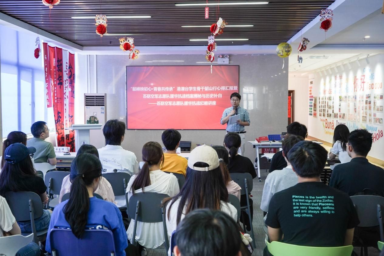 活动分为两个主要环节:首先是第一期港澳台学生骨干培养计划成员韶山行心得汇报,随后是谌达军主任的《苏联空军志愿队援华抗战档案揭秘与历史补白——苏联空军志愿队援华抗战纪略》专题讲座。