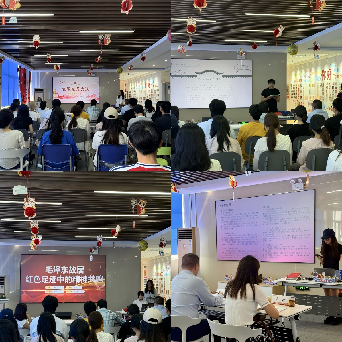 在心得汇报环节,四组学生分别围绕“毛泽东在武汉”、“毛泽东人格魅力启示”、“毛泽东故居探访感受”和“毛泽东诗词赏析”四个主题进行了精彩分享。