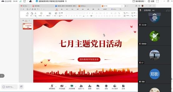 2025年7月17日上午,我院党支部以线上形式开展了七月份党支部主题党日活动。此次主题党日活动的主题为“深入贯彻中央八项规定精神,扎实推动学习教育取得实效”。此次主题党日活动由支部书记郑影同志主持。