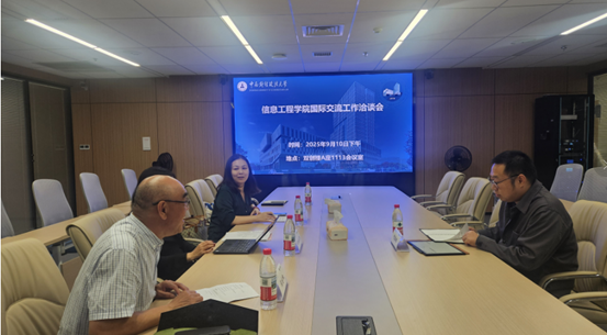 下午15时40分,代表团移步至双创楼1113室,与我校信息工程学院举行第二场洽谈会。信息工程学院副院长李毅鹏、国际教育学院副院长杨苗及相关负责人共同参会。