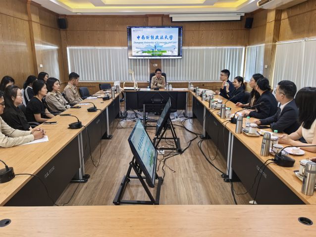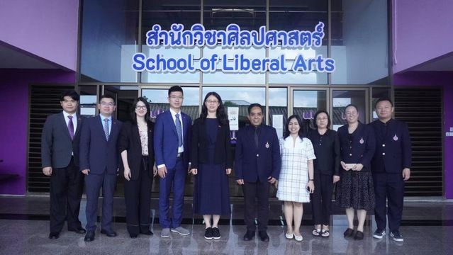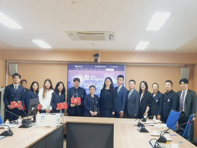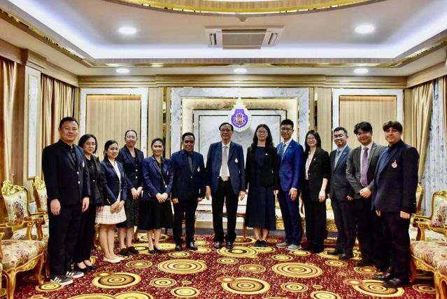 当日下午,代表团与瓦莱岚大学校长颂巴・坦荣潭亚翁、副校长查伦・本亚坎举行会谈。颂巴校长介绍了瓦莱岚大学的办学特色与国际合作愿景,吉群书记提出三点合作期待:一是全力推进法商特色孔子学院建设,打造中泰人文交流新标杆;二是拓展学科合作广度,深化联合培养项目内涵,实现优势互补;三是锚定关键合作节点,共同推进里程碑式合作成果落地。会谈后,双方合影留念,见证合作共识的达成。