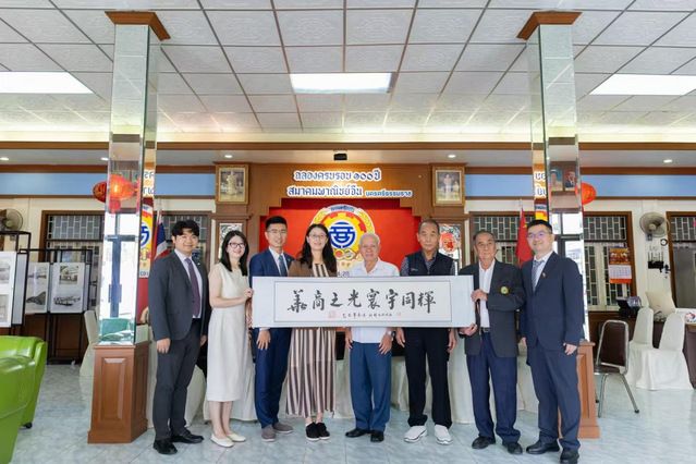 12月8日,代表团与洛坤府中华商会举行合作洽谈会。吉群书记立足学校法商学科优势,提出四项合作倡议:一是共建中文教育研究中心,联合研发兼具法商特色的中文教材,助力泰国中文教育提质升级;二是开展师资专项培训,培养“中文+专业”复合型人才,满足区域经贸合作人才需求;三是设立专项交流基金,资助泰南优秀学子赴华进修,同时欢迎华商子弟报考学校法商类专业;四是合办中泰文化节与法商论坛,以文化为纽带赋能企业务实合作。商会负责人对四项倡议表示高度认同,双方达成初步合作共识,为后续孔子学院落地及多领域合作铺平道路。