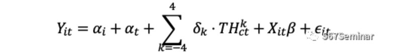 其中,Yit表示个体i在t年的结果变量。αi和αt分别表示个体和时间固定效应。Xit表示一组控制变量,包括年龄、性别和居住州的线性时间趋势,此外还控制了k≤-5和k≥5。THkct是一组事件研究虚拟变量,表示距离免税期开始第k年取值为1。其系数δk衡量了第k年结果变量较之于k=-1的变化情况。
