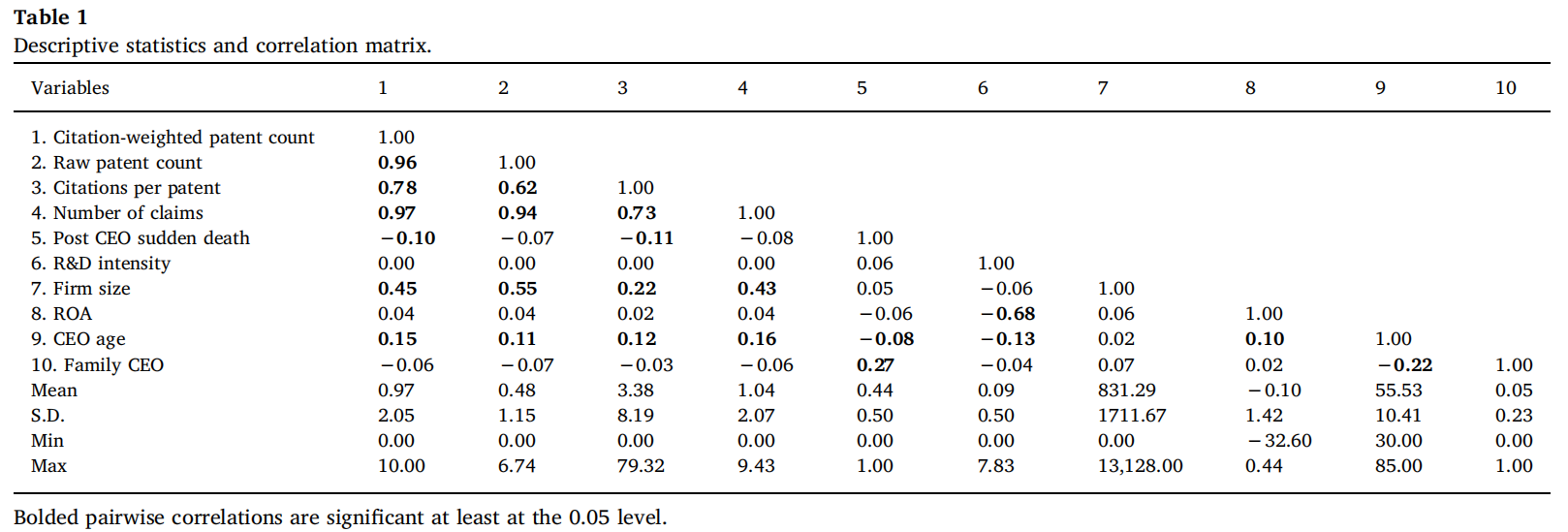 本文的主要前提预测是,由于创始人CEO比专业CEO有更强的冒险倾向,创始人 CEO管理的公司将比专业 CEO管理的公司产生更多的创新。这个研究问题很难通过经验来解决,因为创始人兼CEO的地位可能是创新的内生性因素。因为创始人CEO与创新之间的正相关可能表明,创新有助于创始人CEO维持其管理职位更长的时间,产生了反向因果关系的担忧。为了克服这些经验局限性,本文使用了1979-2002年期间的公司样本,其中任命新CEO的时间和需要是准随机决定的,因为之前的CEO突然死亡。也就是说,新CEO的任命显然与创始人CEO的地位和公司的创新绩效正交。