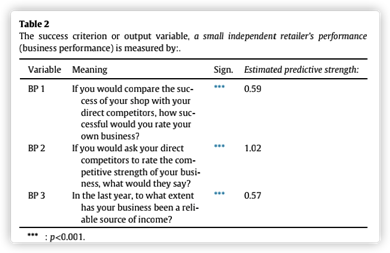 在小型企业中,成功是由小型独立零售商在内部定义的。因此,这要求小型独立零售商具备自我效能和自我评估能力。而研究结果揭示,自我效能对销售业绩产生直接的积极的影响。