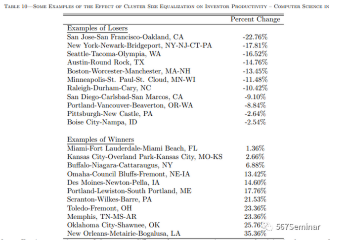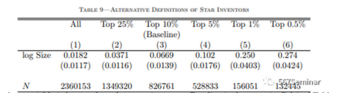 表7表明规模较大集群中的明星发明家往往比规模较小集群中的明星发明家引用更多专利。