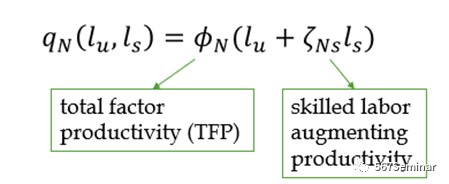 据此,本文将N类型企业产出表示为关于两种类型劳动力的函数: