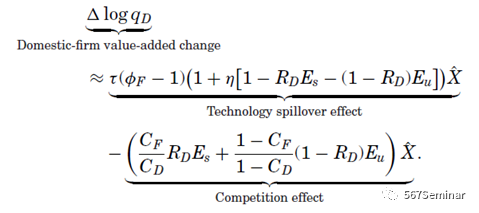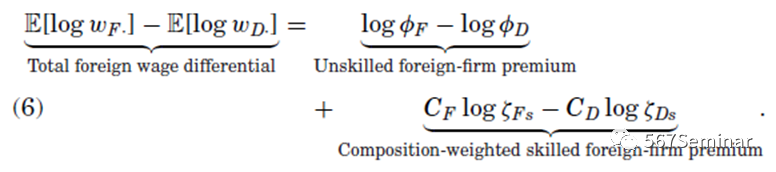 对上式求期望并将两种不同类型的企业的均衡工资做差可得外资跨国企业的直接效应为:
