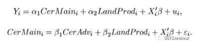 在度量谷物种植情况时,考虑到谷物实际产量(CerMaini)的内生性问题,本文使用谷物和根(块)茎类作物的最大潜在热能产量之差(CerAdvi)作为工具变量,截面模型设定如下: