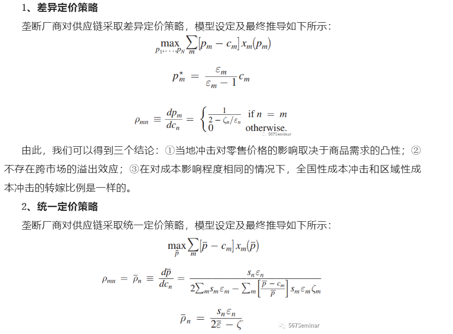 由此,我们同样可以得到三个结论:①任何一个市场的成本冲击都会使得所有市场的价格发生变化,即存在溢出效应;②与差异定价策略情形相比,区域性成本冲击的价格转嫁要更小;③受到成本冲击影响程度越高的市场,价格转嫁越明显。