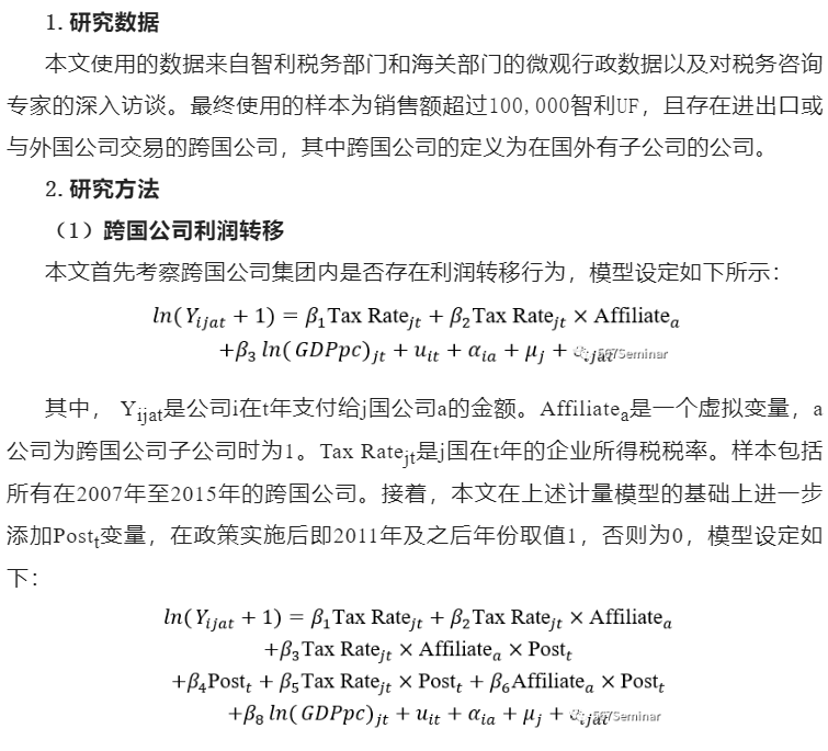 在过去的十几年里,数字经济和离岸金融的快速发展加剧了跨国公司的避税行为,跨国利润转移活动激增。据估计,36%的跨国公司将利润转移至避税天堂,严重侵蚀了国家的税基。为了抑制利润转移对税基的侵蚀,许多国家出台了加强跨国涉税信息报告和执行的政策。然而,想要准确估计这些政策的因果效应困难重重,挑战之一在于缺乏详细的跨国母、子公司之间的交易数据。