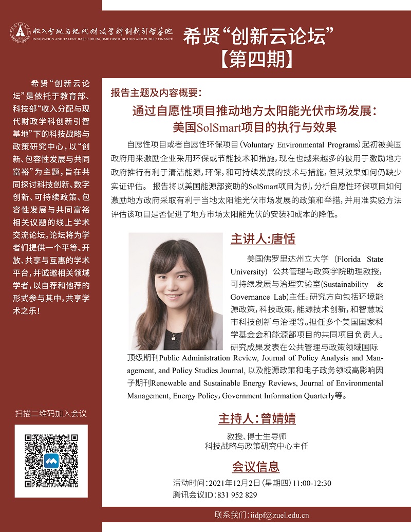 自愿性项目或者自愿性环保项目(Voluntary Environmental Programs)期初被美国政府用来激励企业采用环保或节能技术和措施,现在也越来越多的被用于激励地方政府推行有利于清洁能源、环保和可持续发展的技术与措施,但效果如何仍缺少实证评估。报告将以美国能源部资助的SolSmart项目为例,分析自愿性环保项目如何激励地方政府采取有利于当地太阳能光伏市场发展的政策和举措,并用准自然实验方法评估该项目是否促进了地方市场太阳能光伏的安装和成本的降低。