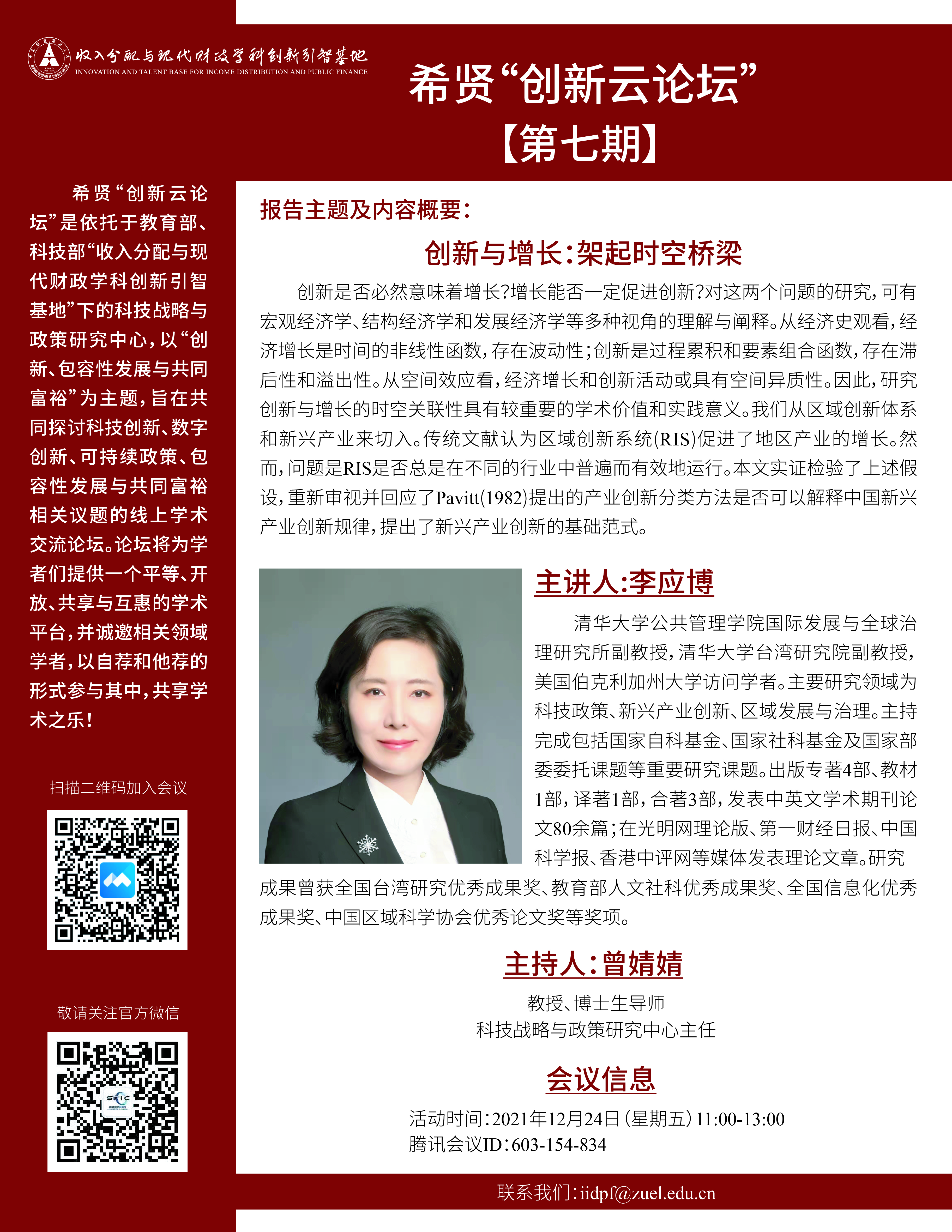 教育部、科技部收入分配与现代财政学科创新引智基地科技战略与政策研究中心主任