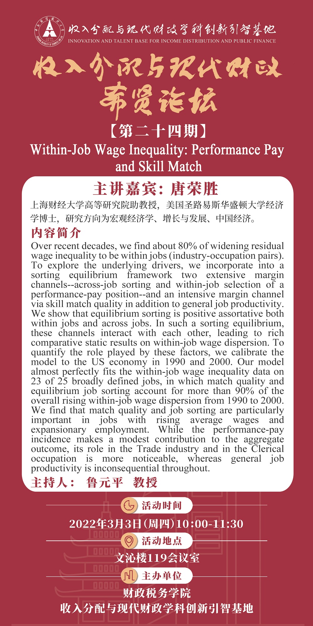 讲座题目: Within-Job Wage Inequality: Performance Pay and Skill Match