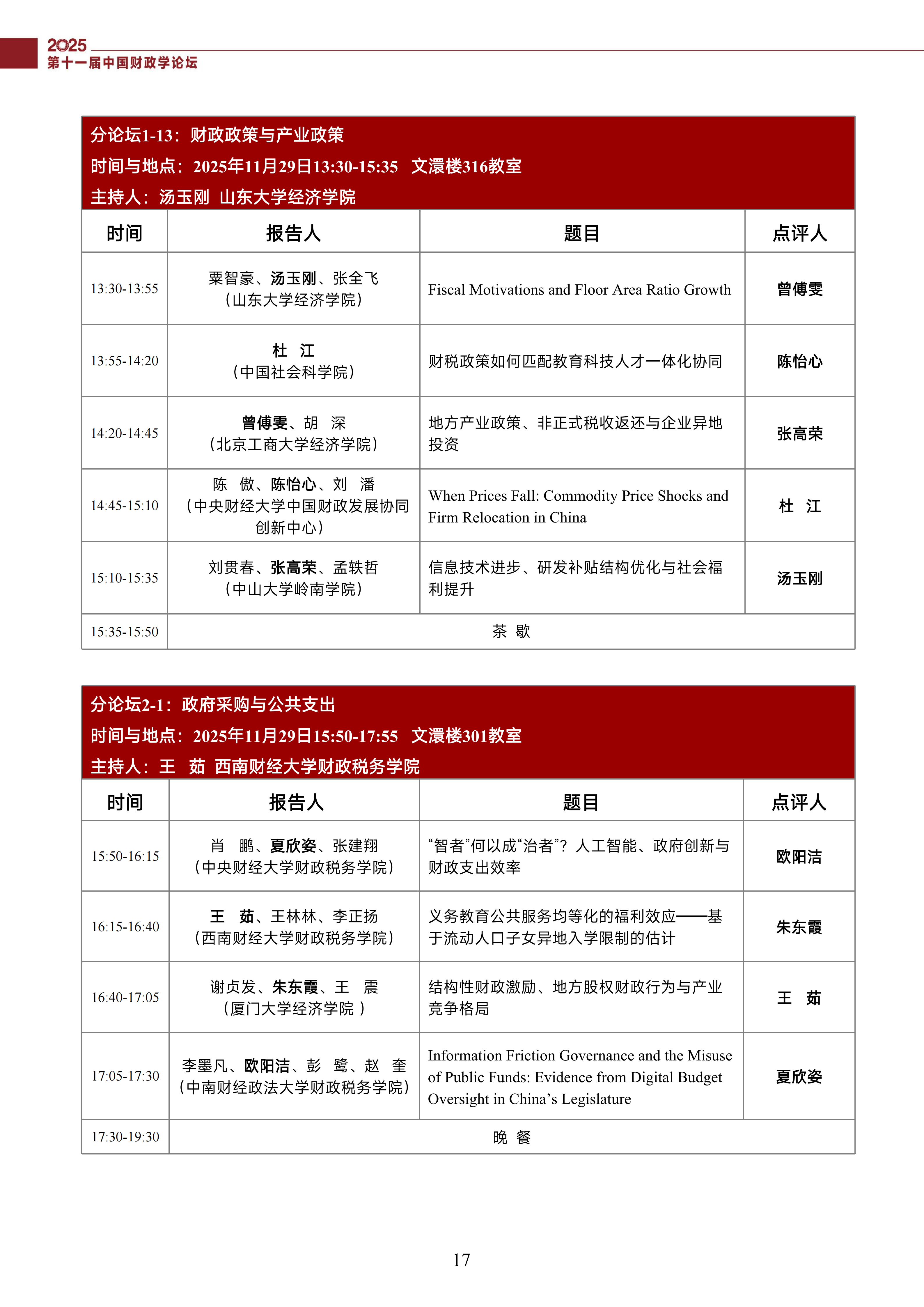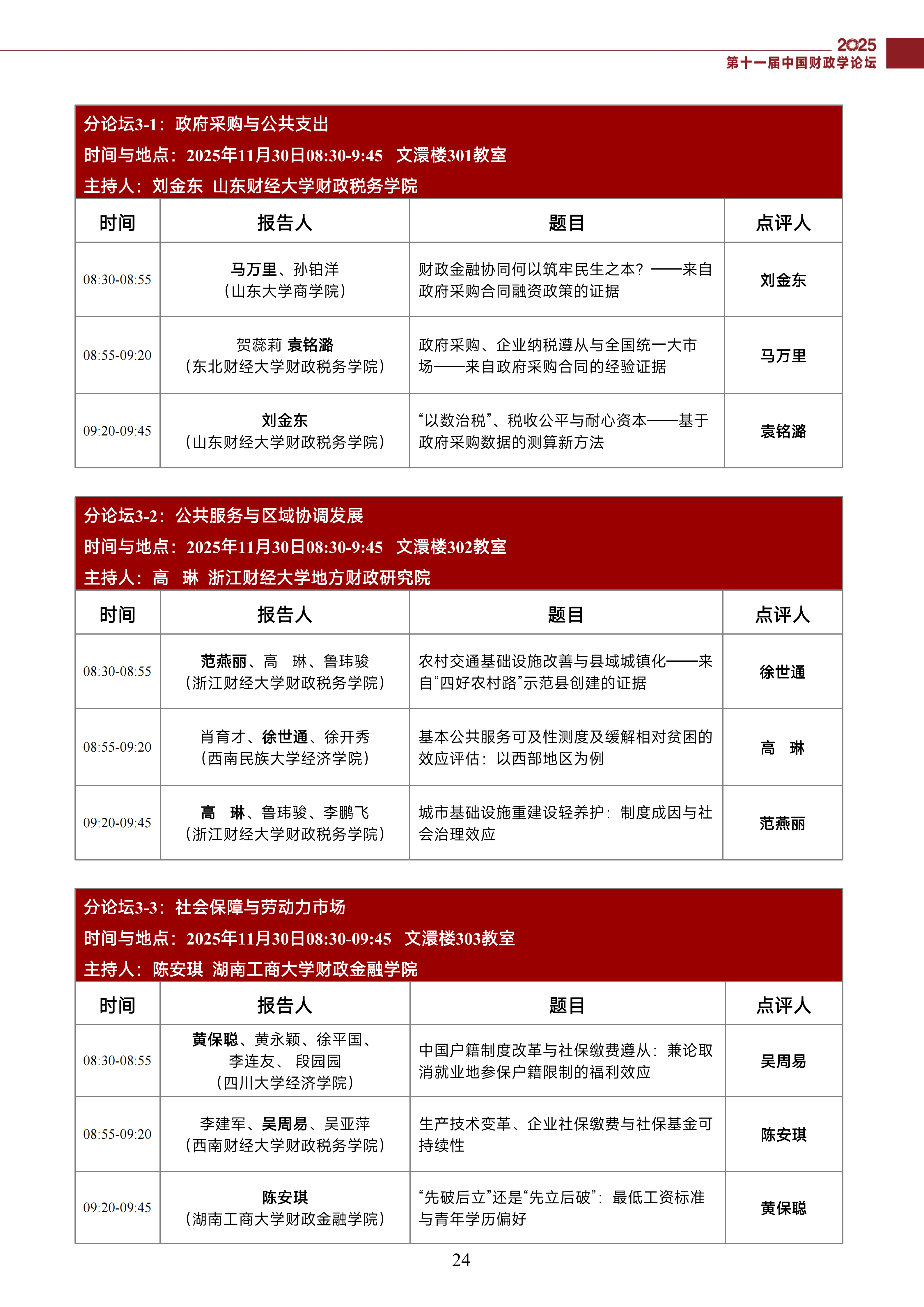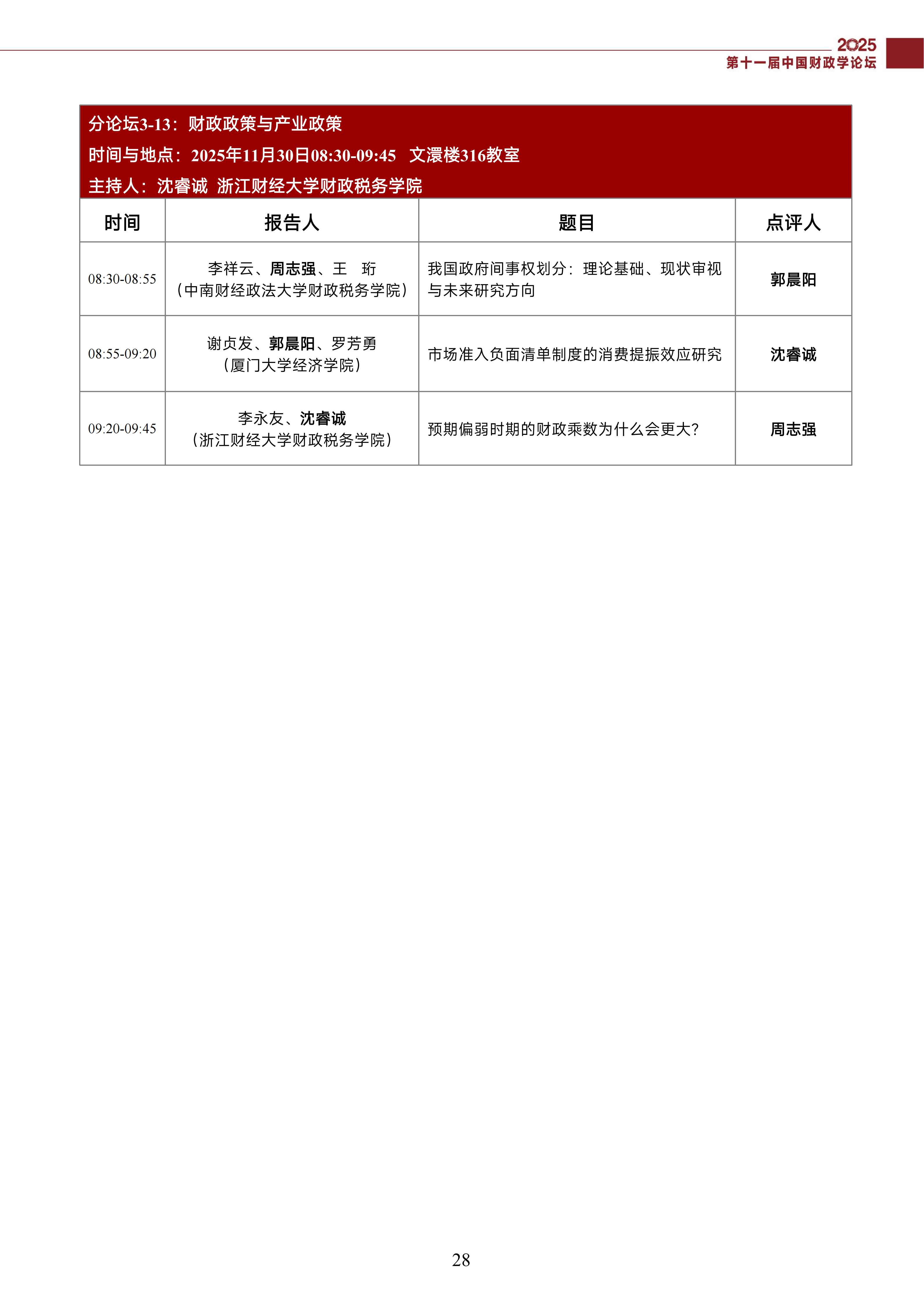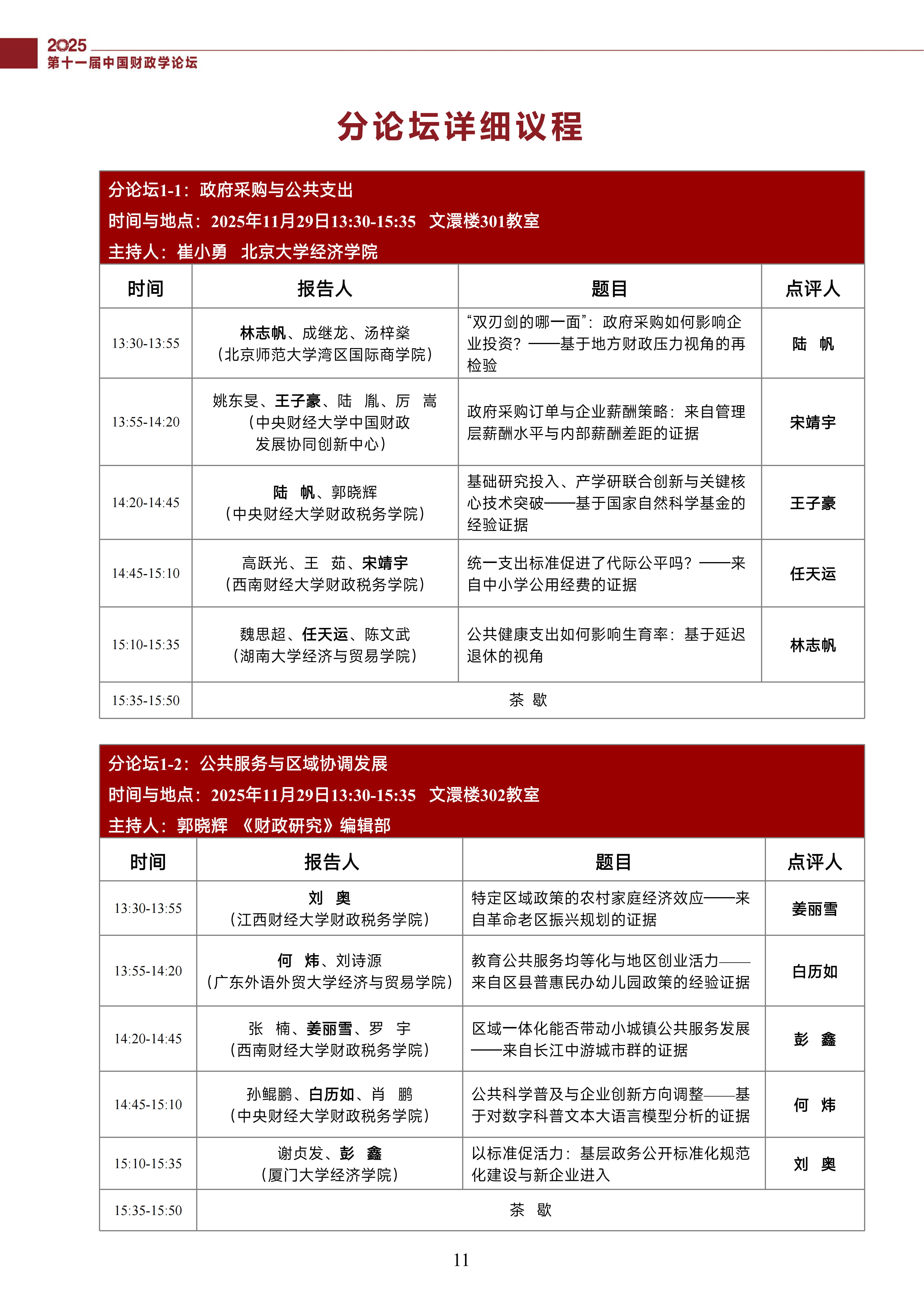 第十一届中国财政学论坛(2025)会议议程