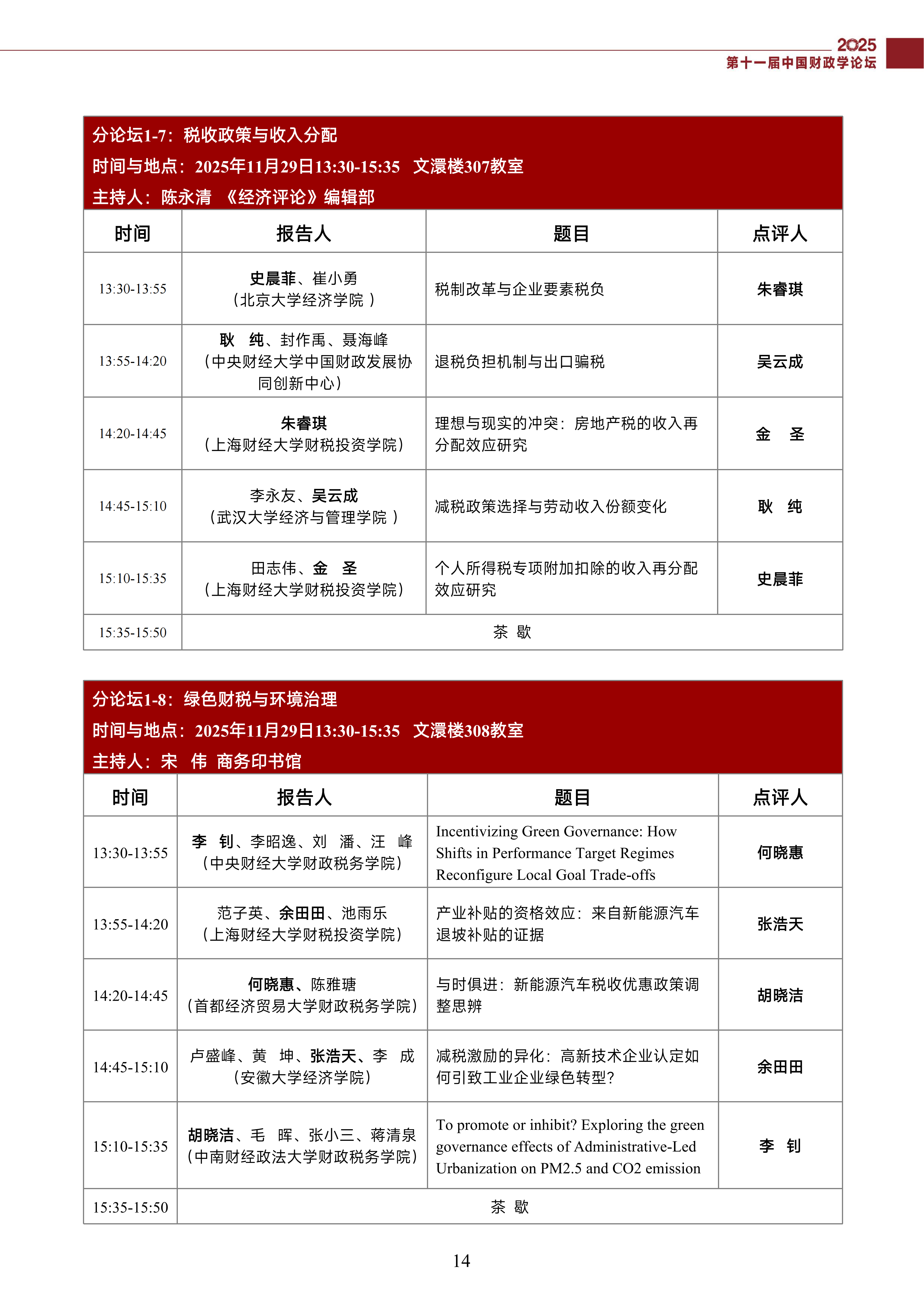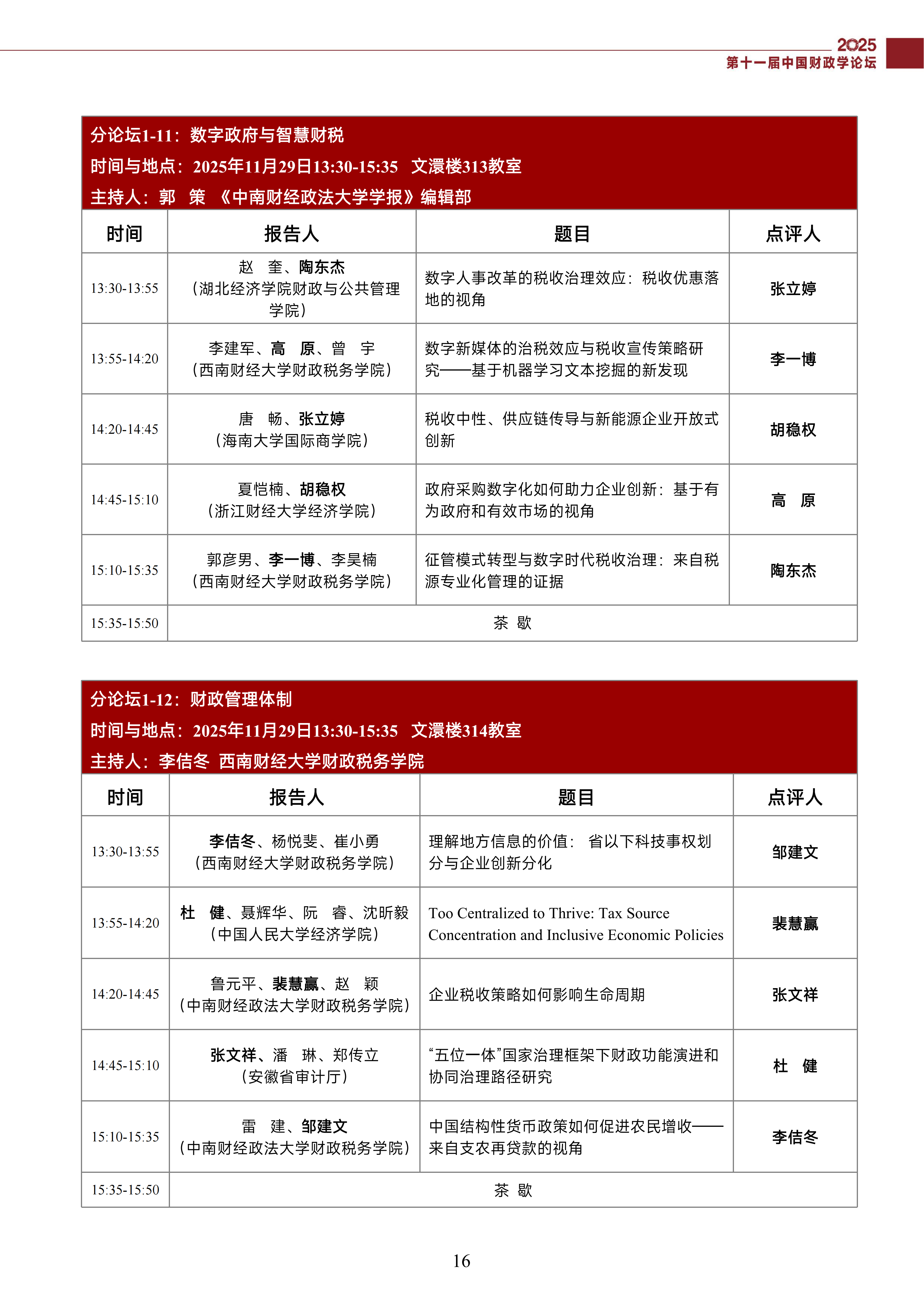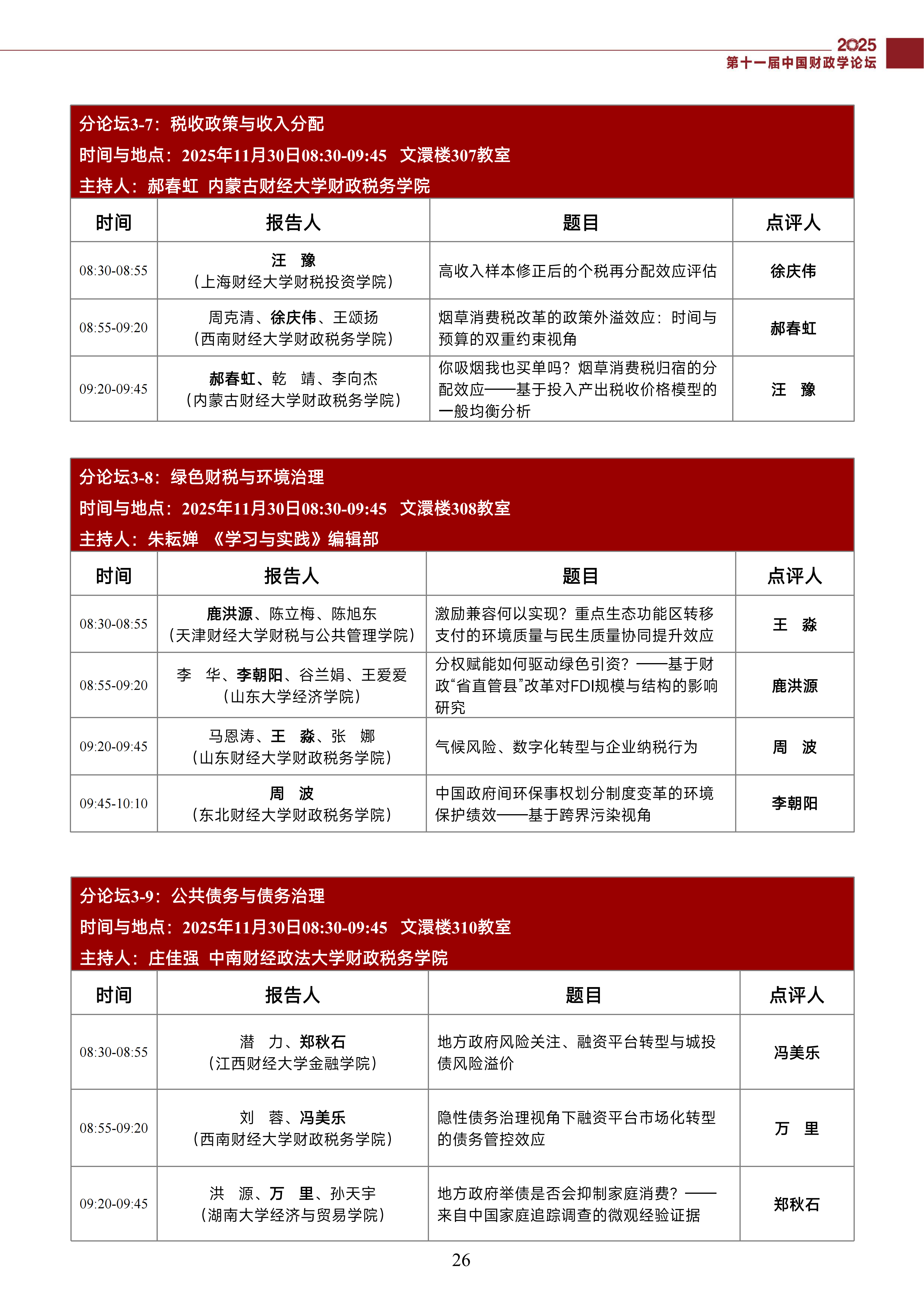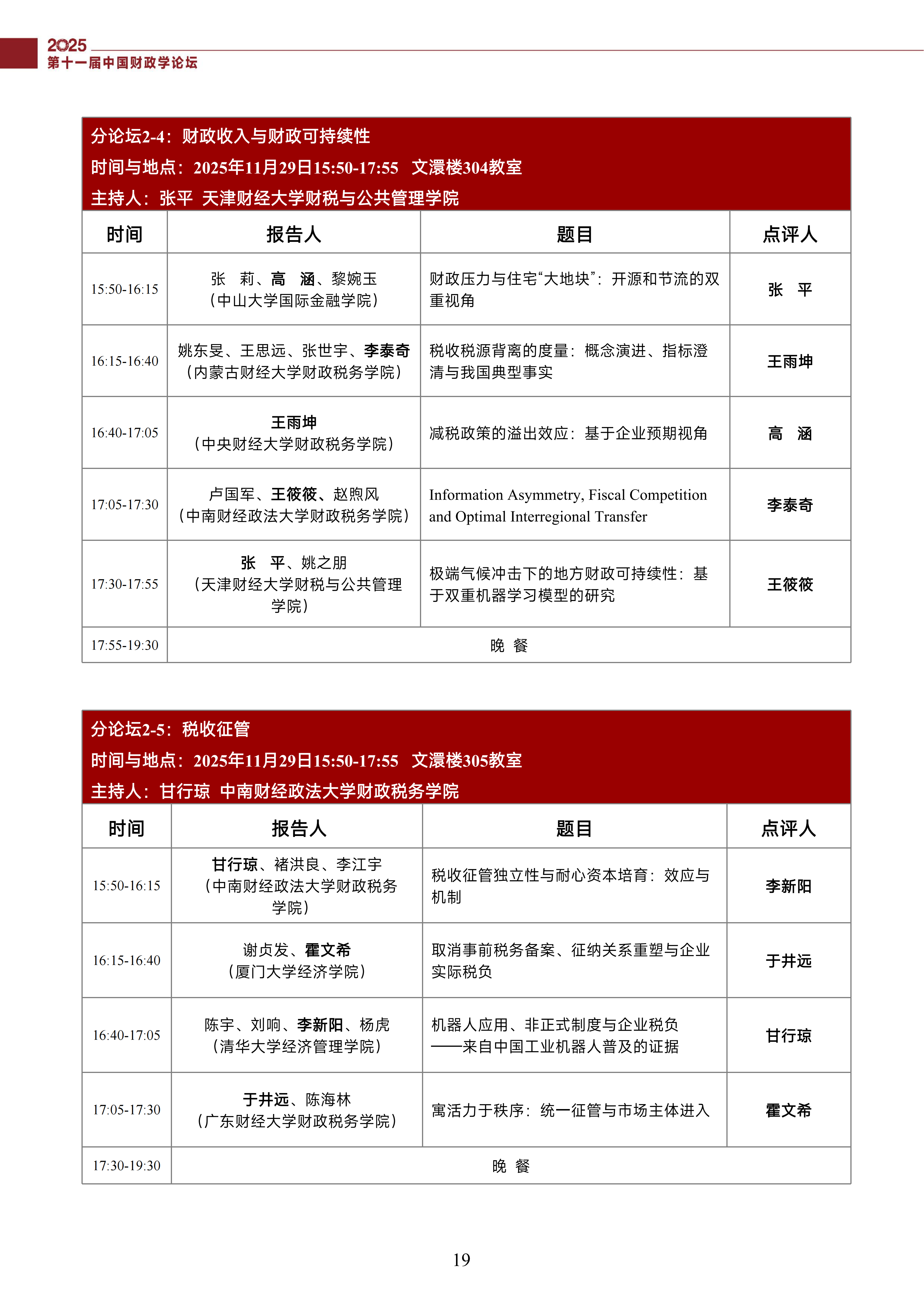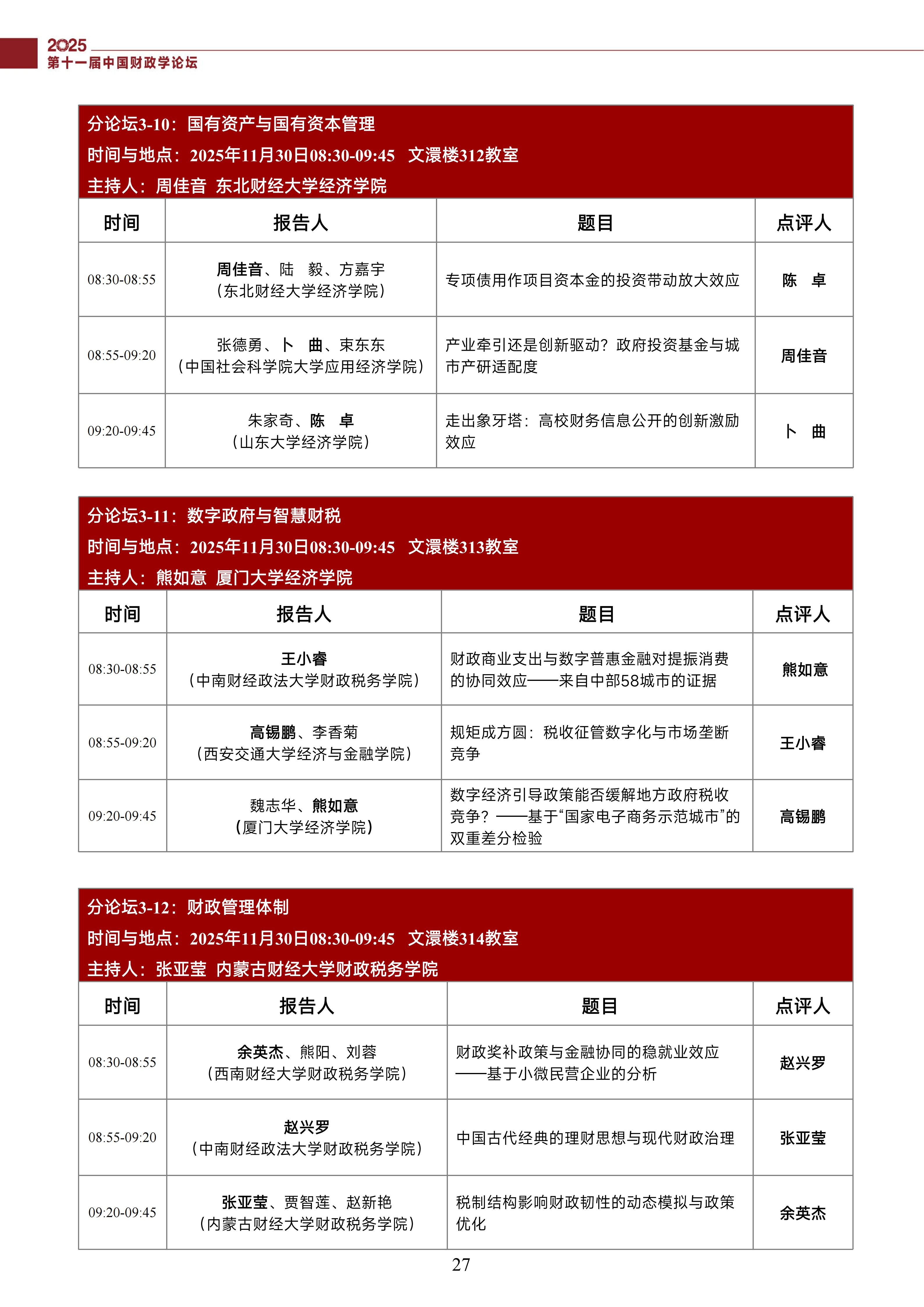 第十一届中国财政学论坛(2025)会议议程