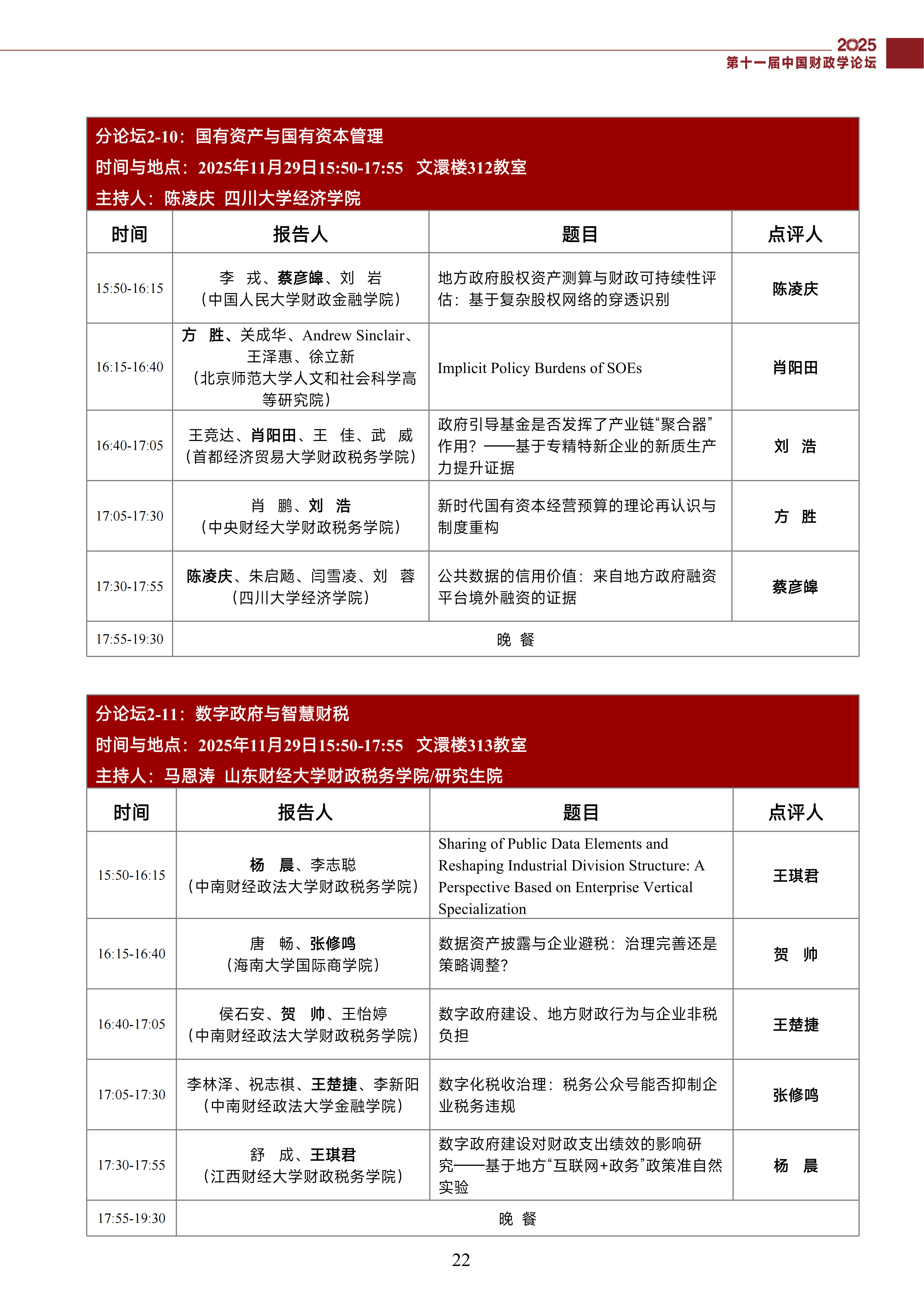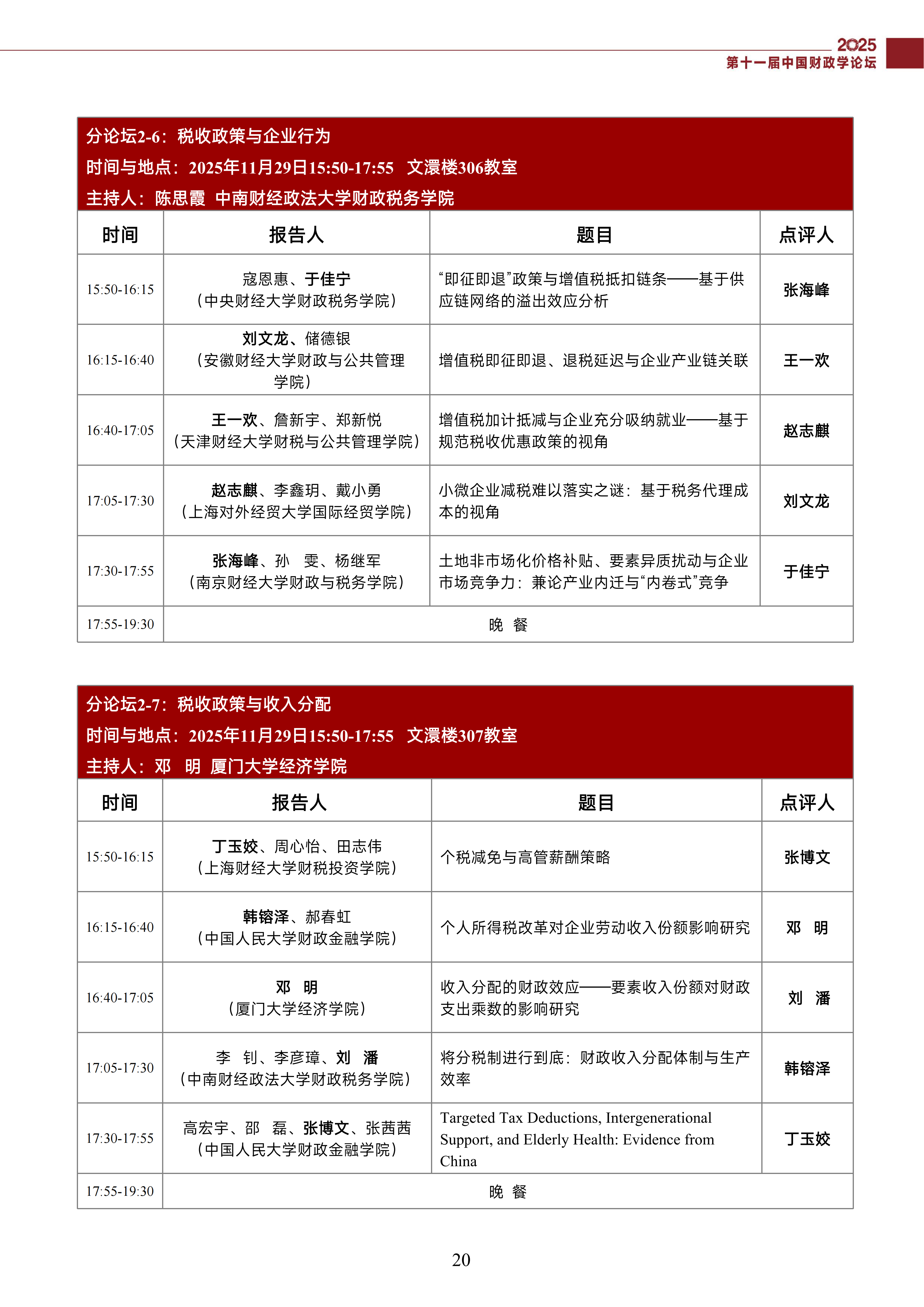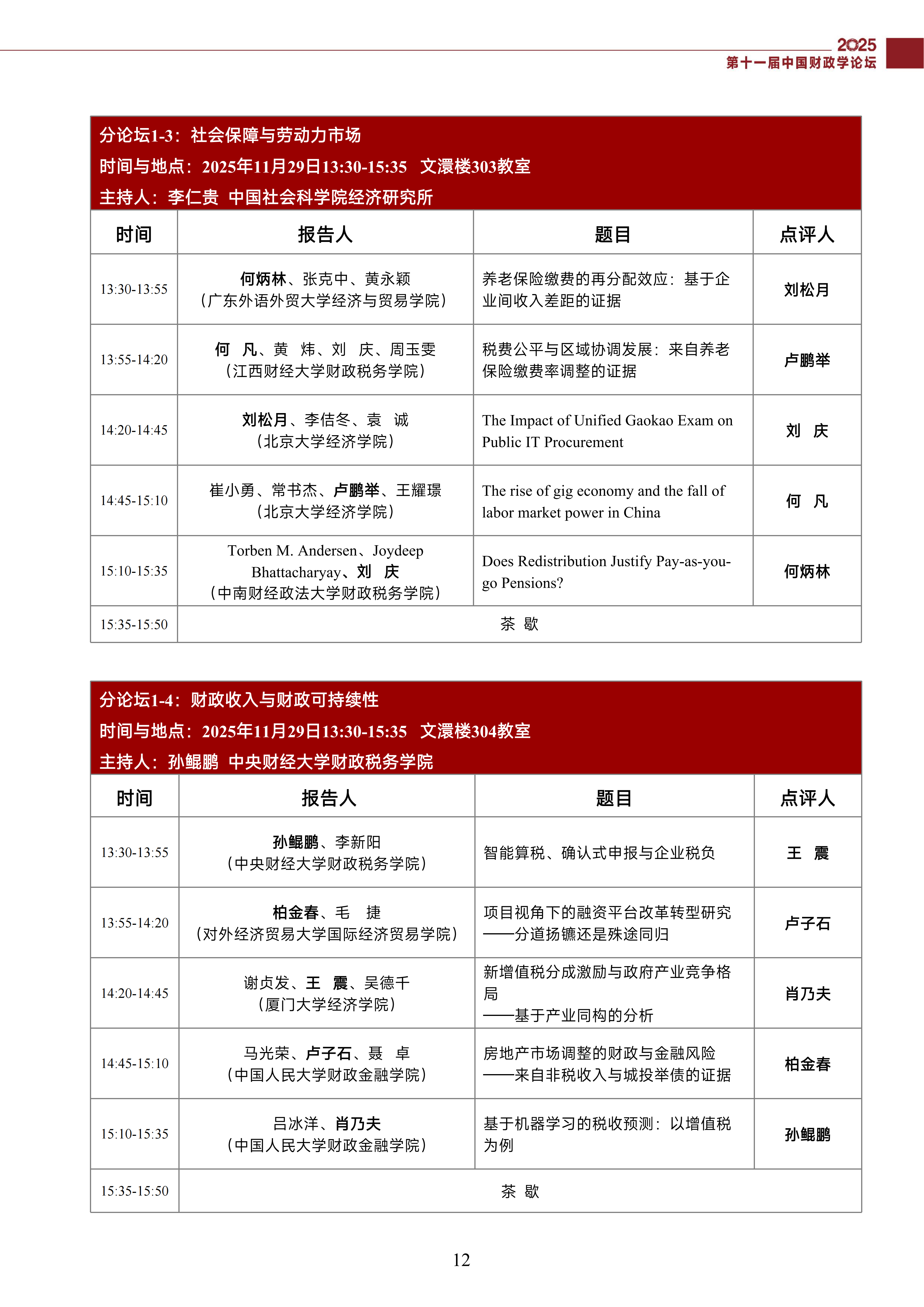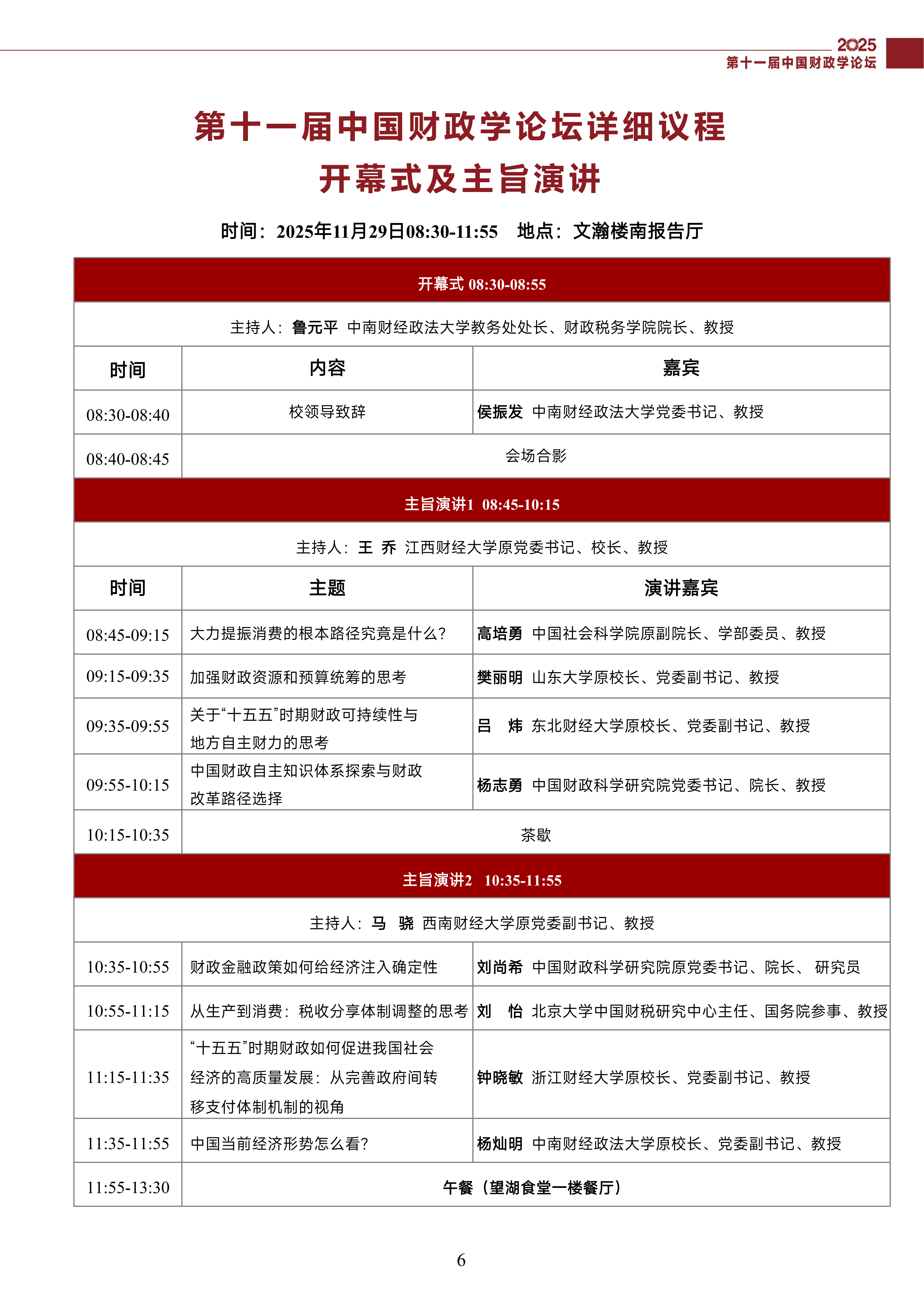 第十一届中国财政学论坛(2025)会议议程