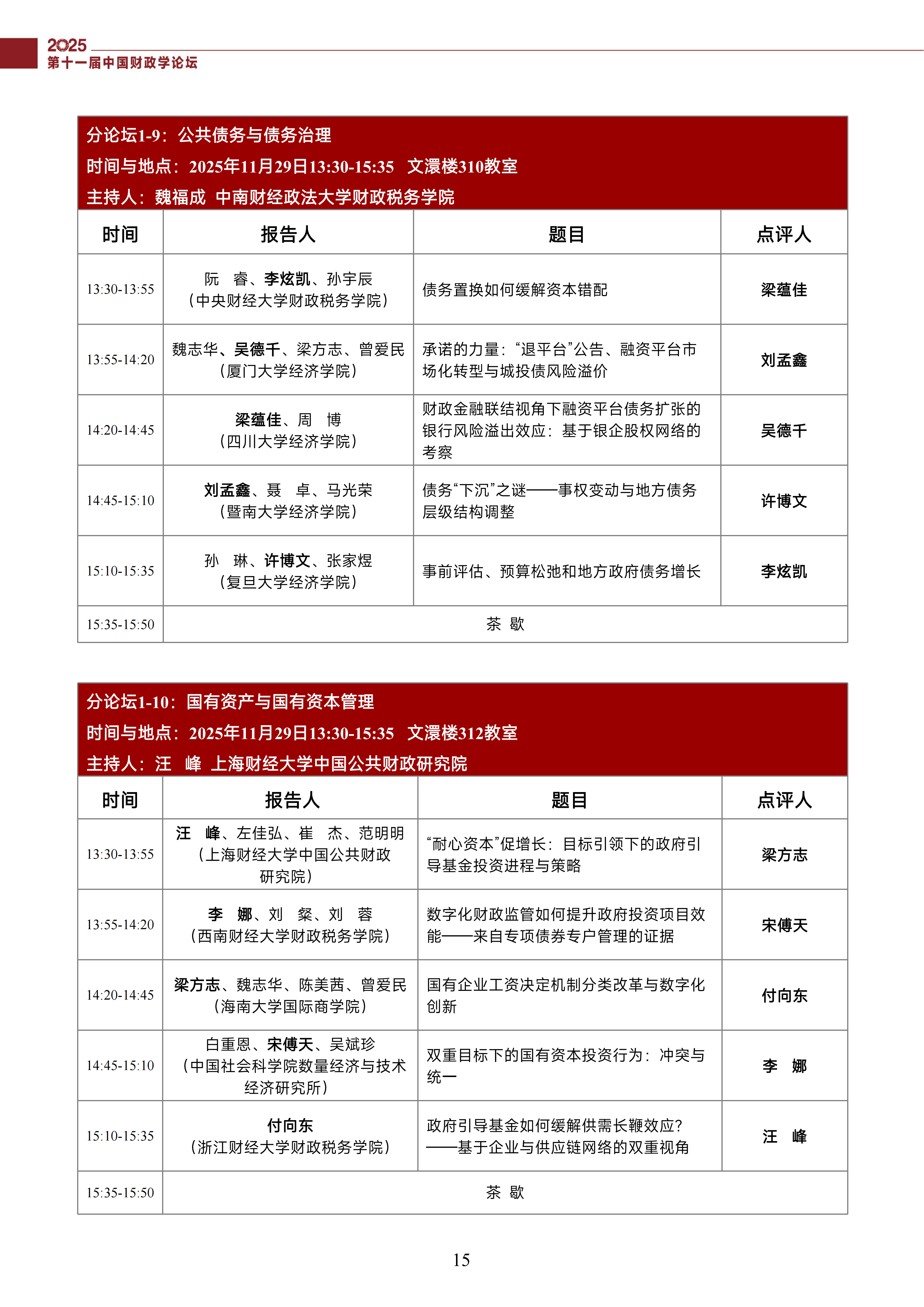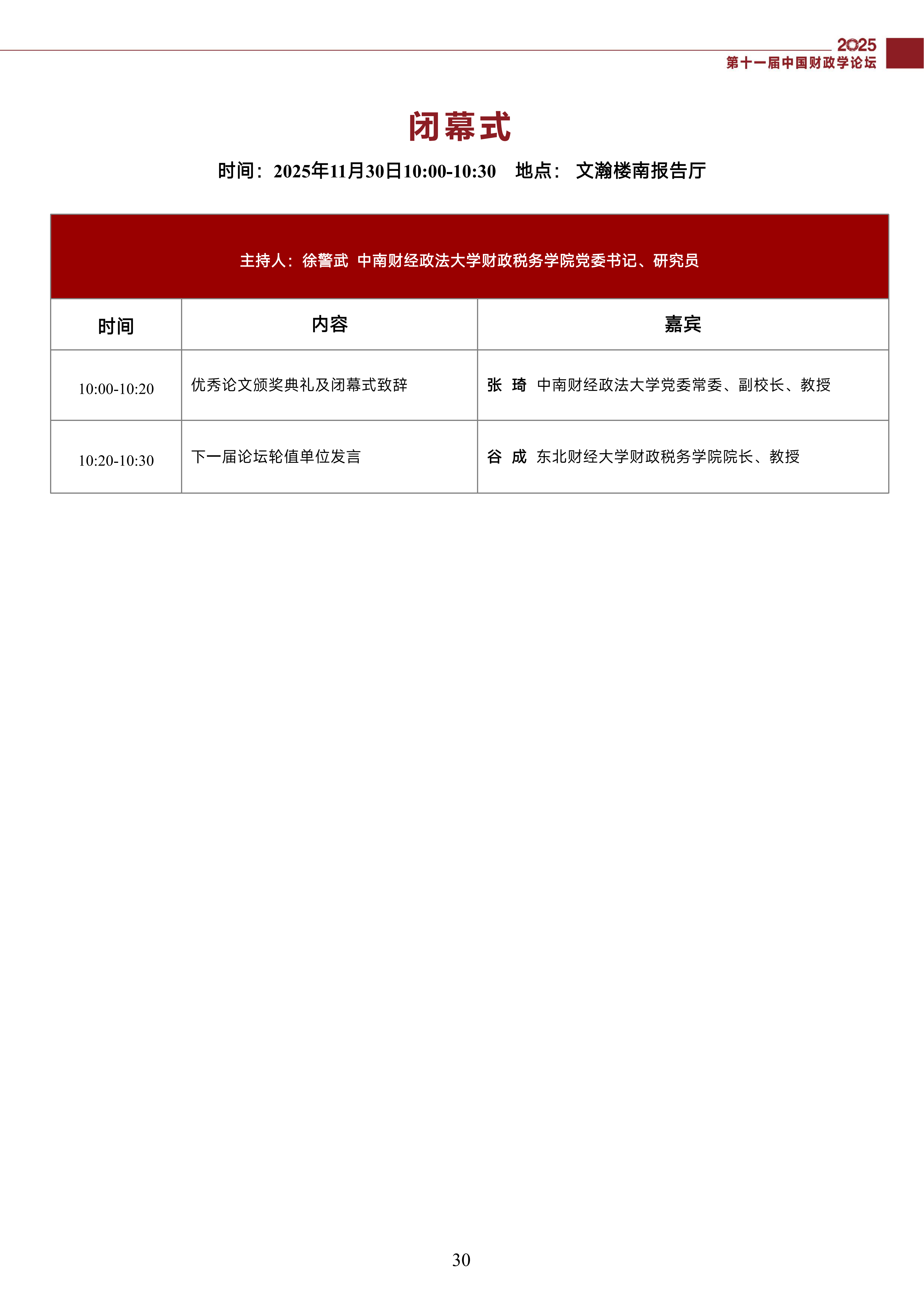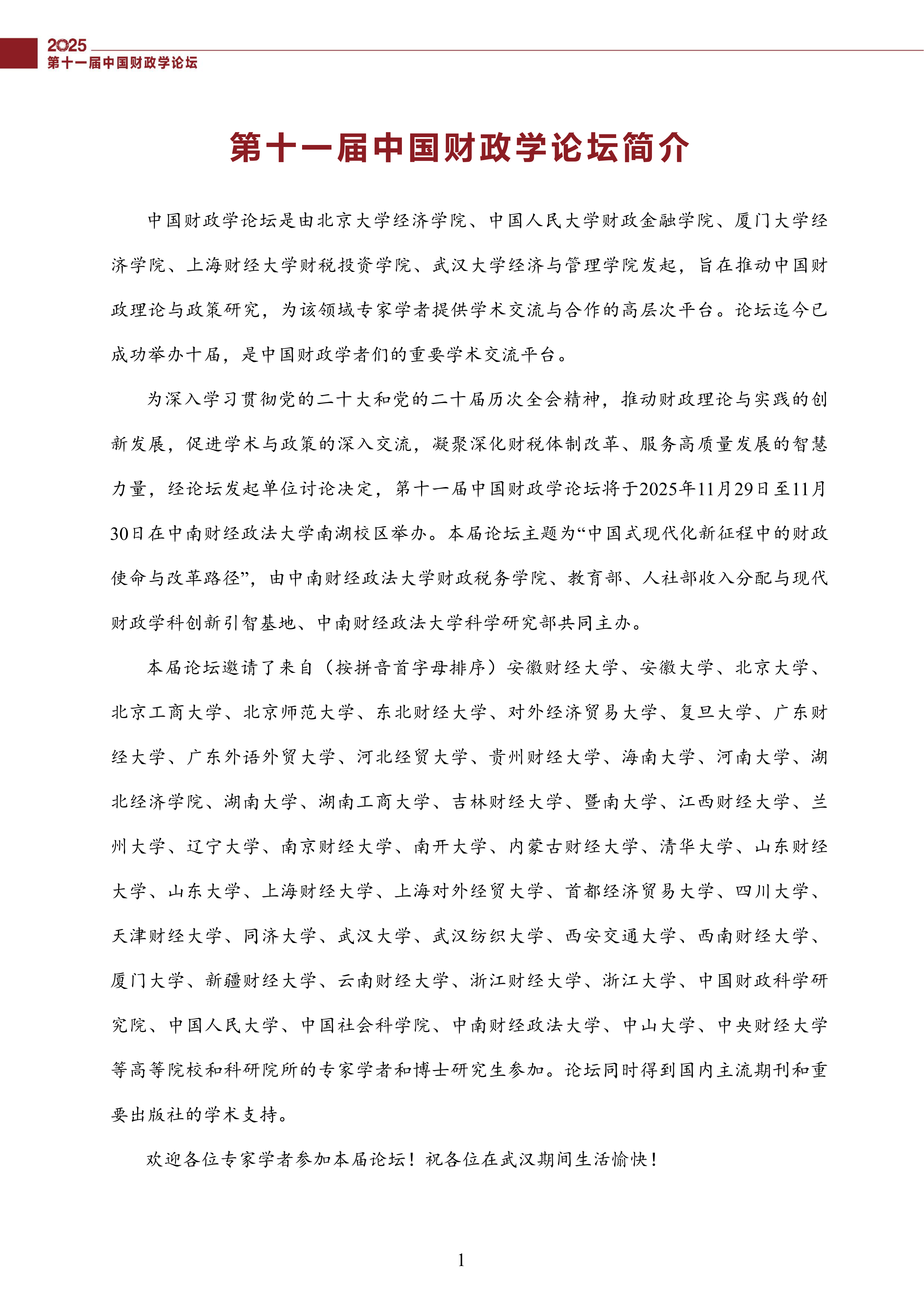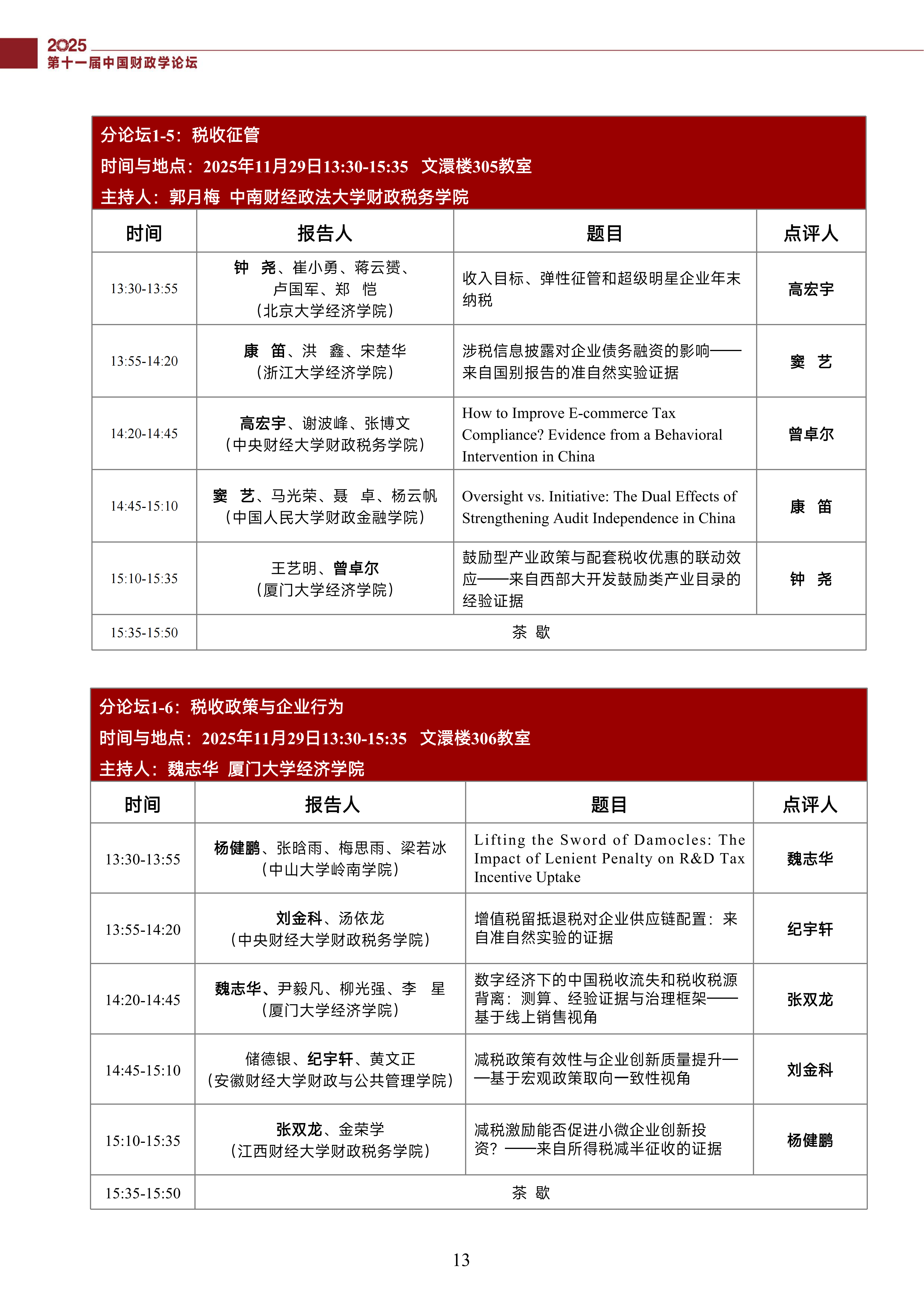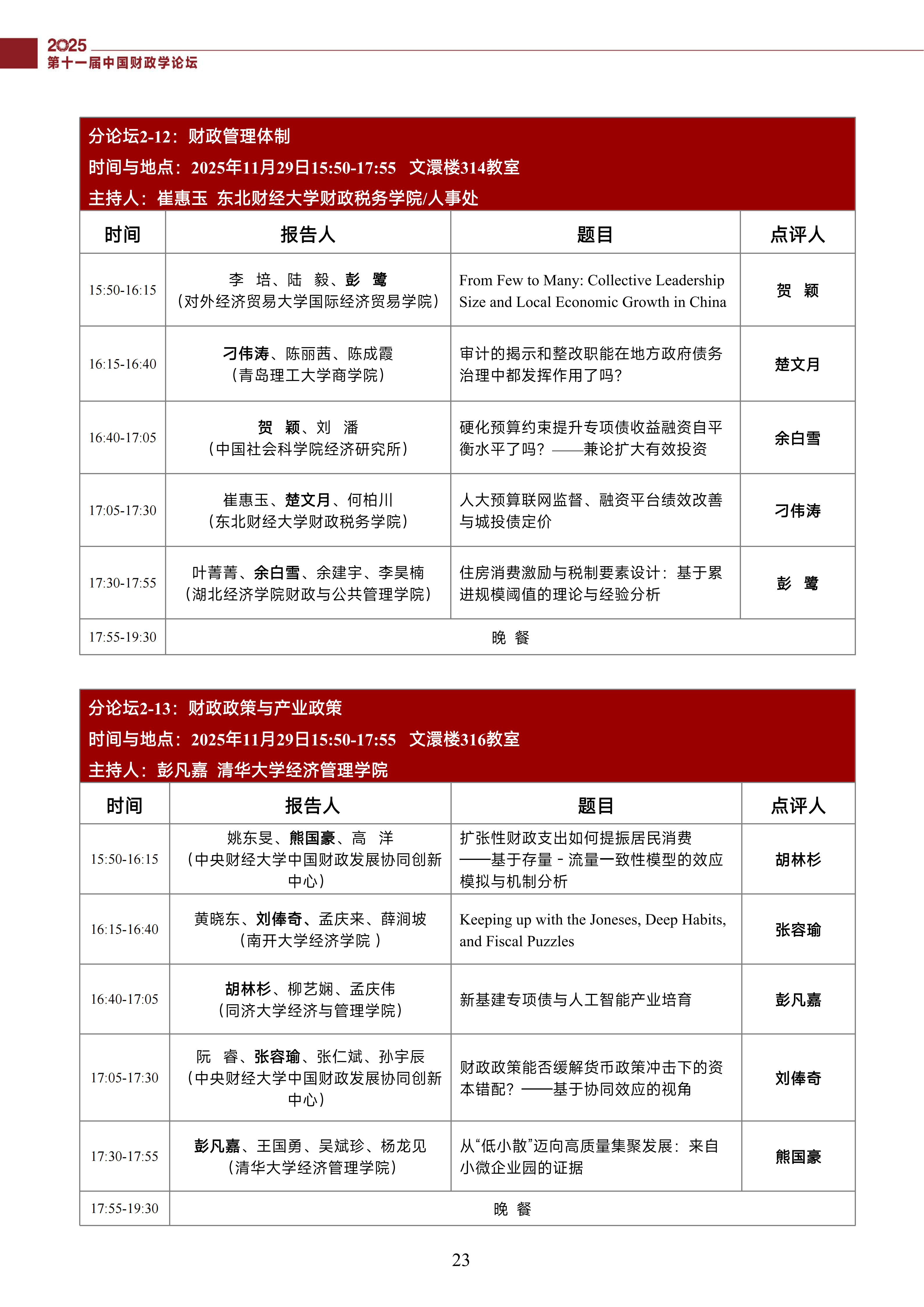 第十一届中国财政学论坛(2025)会议议程