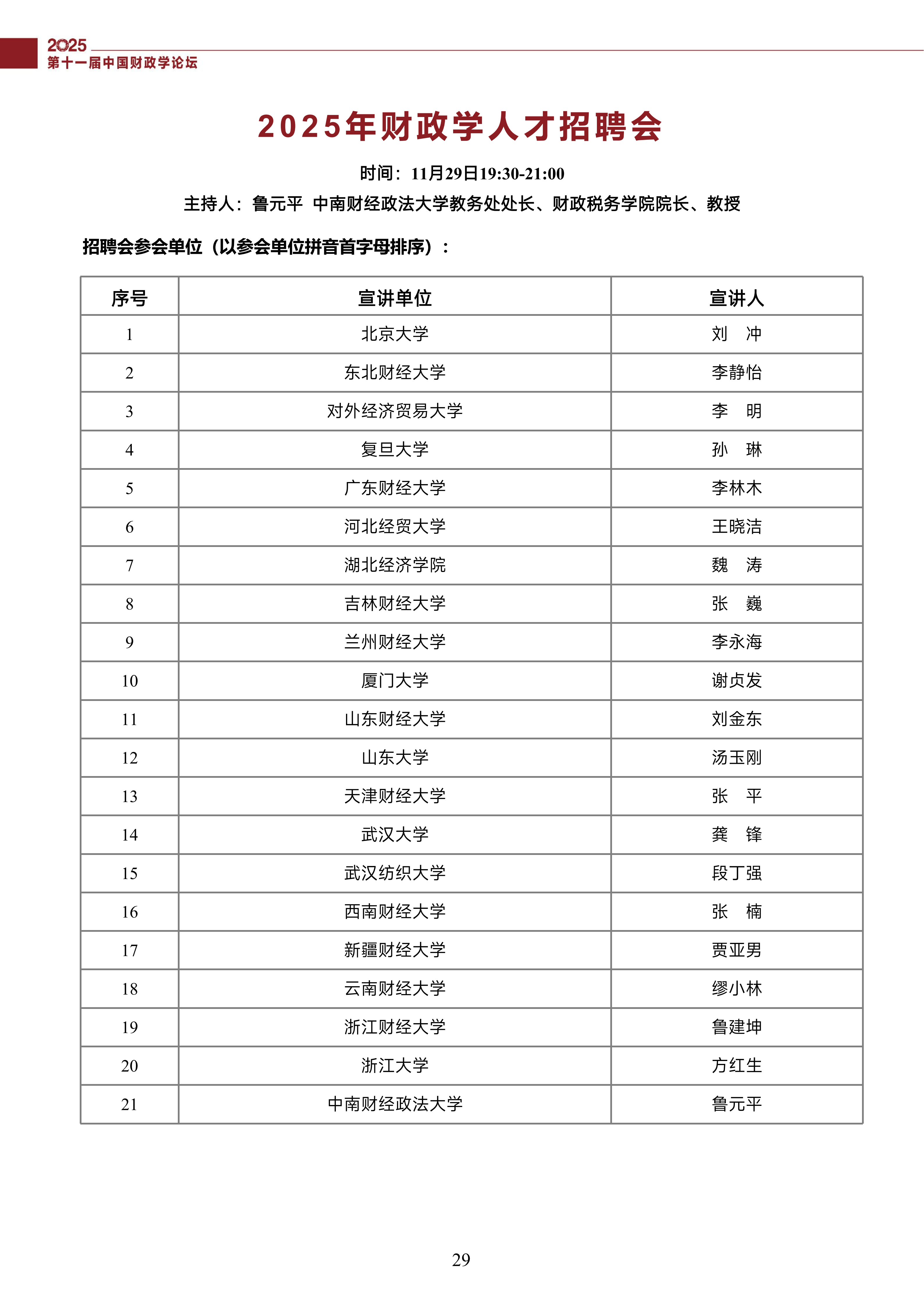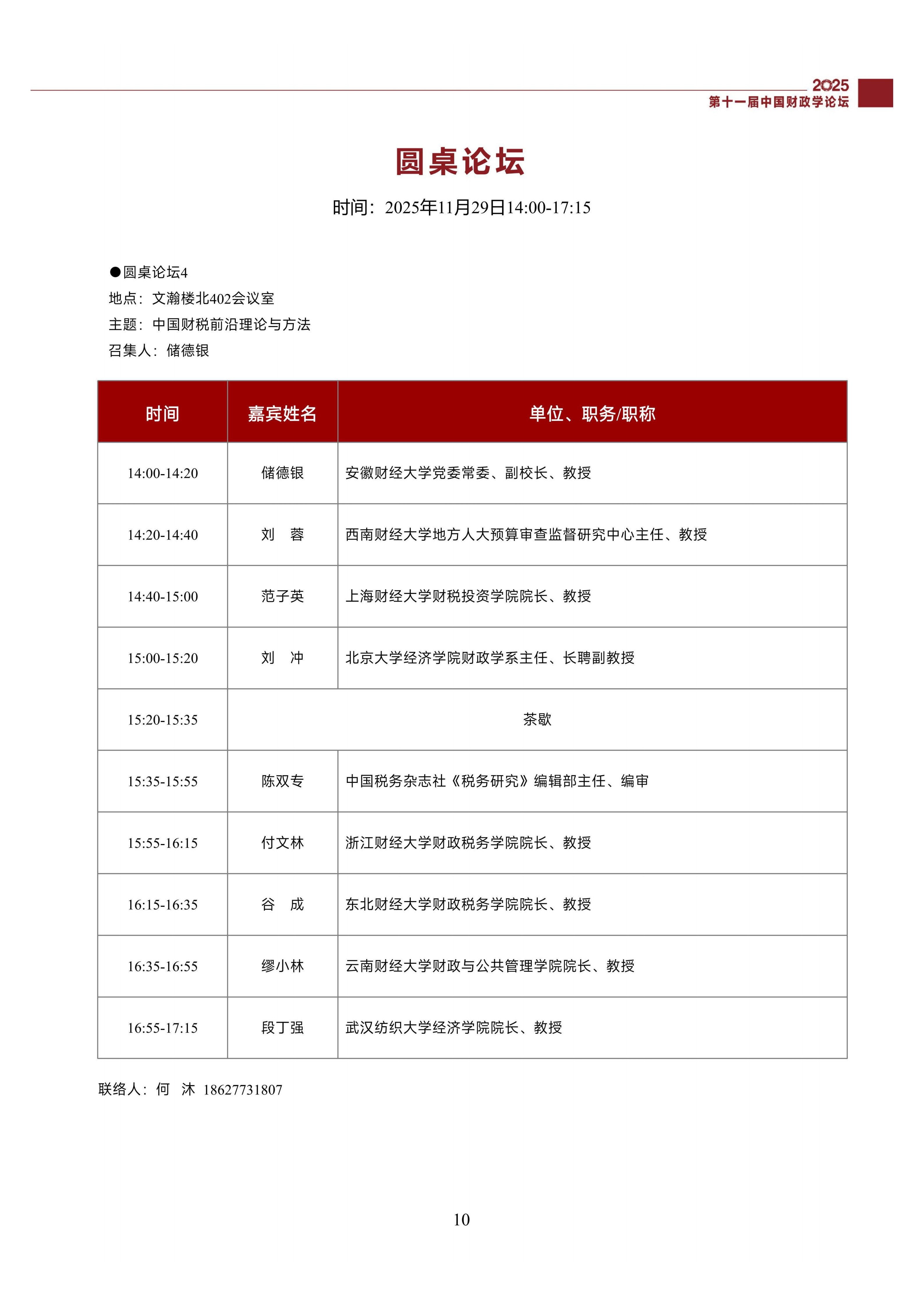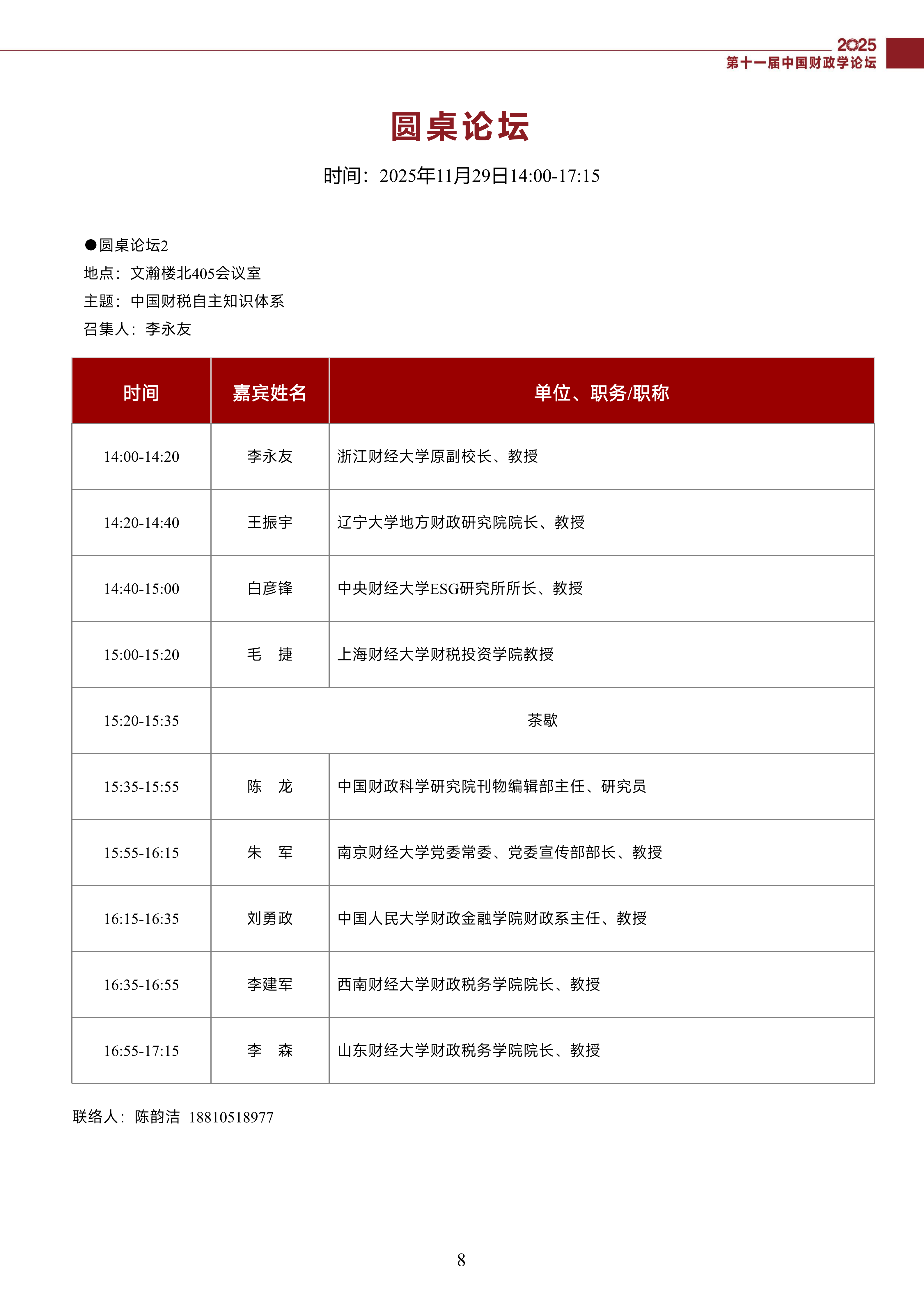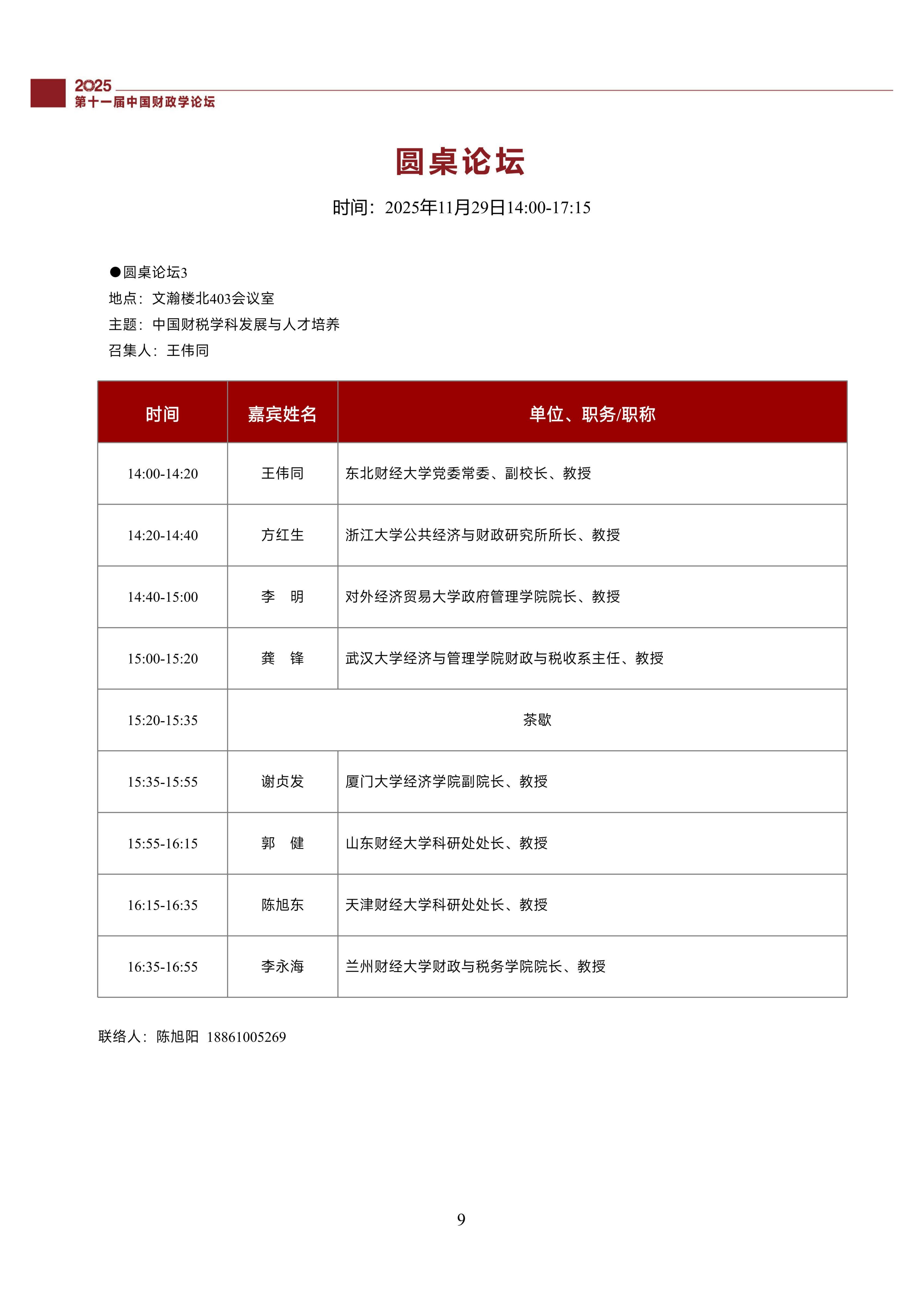 第十一届中国财政学论坛(2025)会议议程
