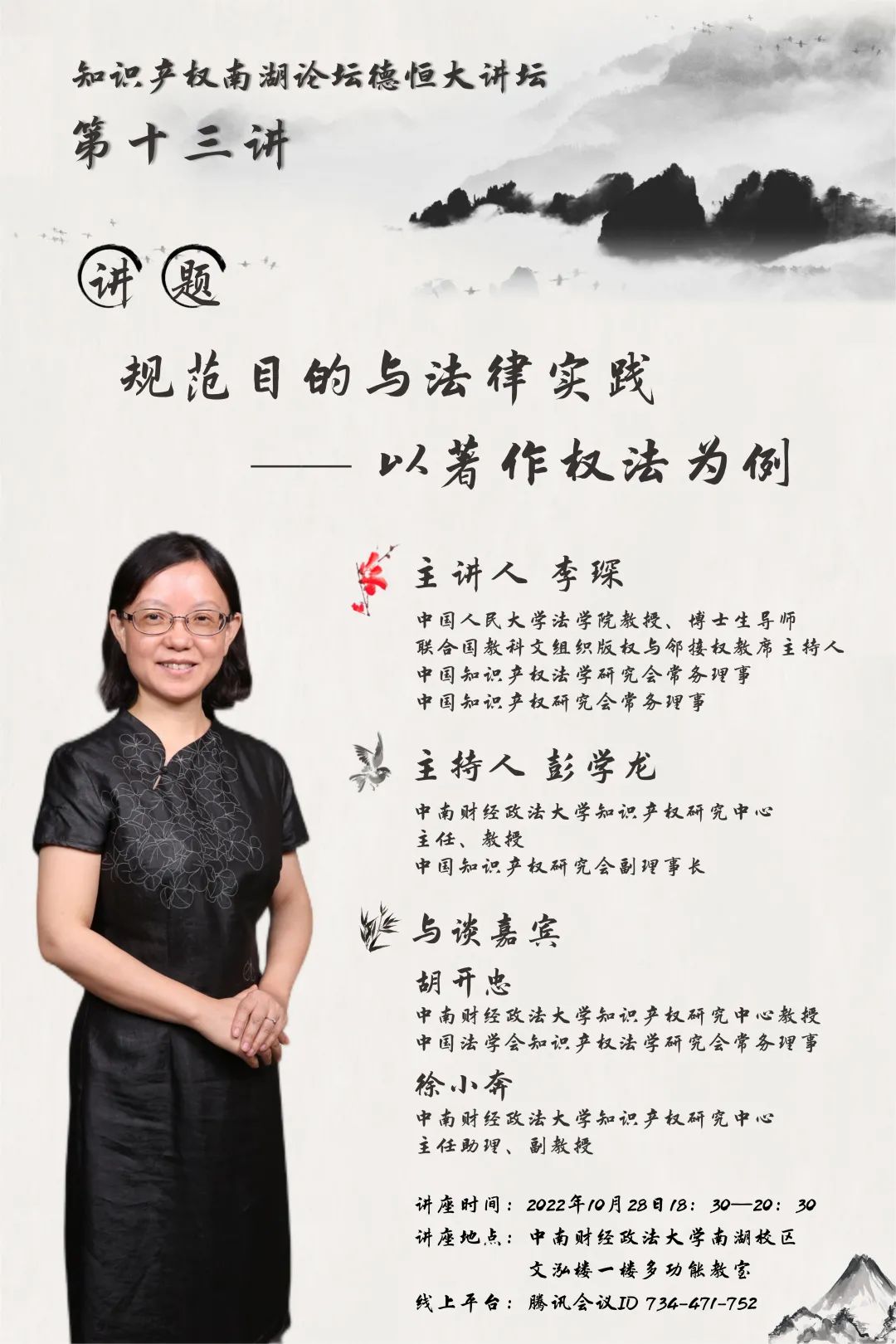 【讲座预告】李琛:规范目的与法律实践——以著作权法为例