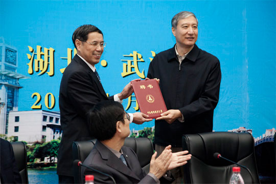 在揭牌仪式正式开始前,吴汉东校长代表学校聘请了知识产权局局长田力普先生为我校客座教授并颁发了聘书。