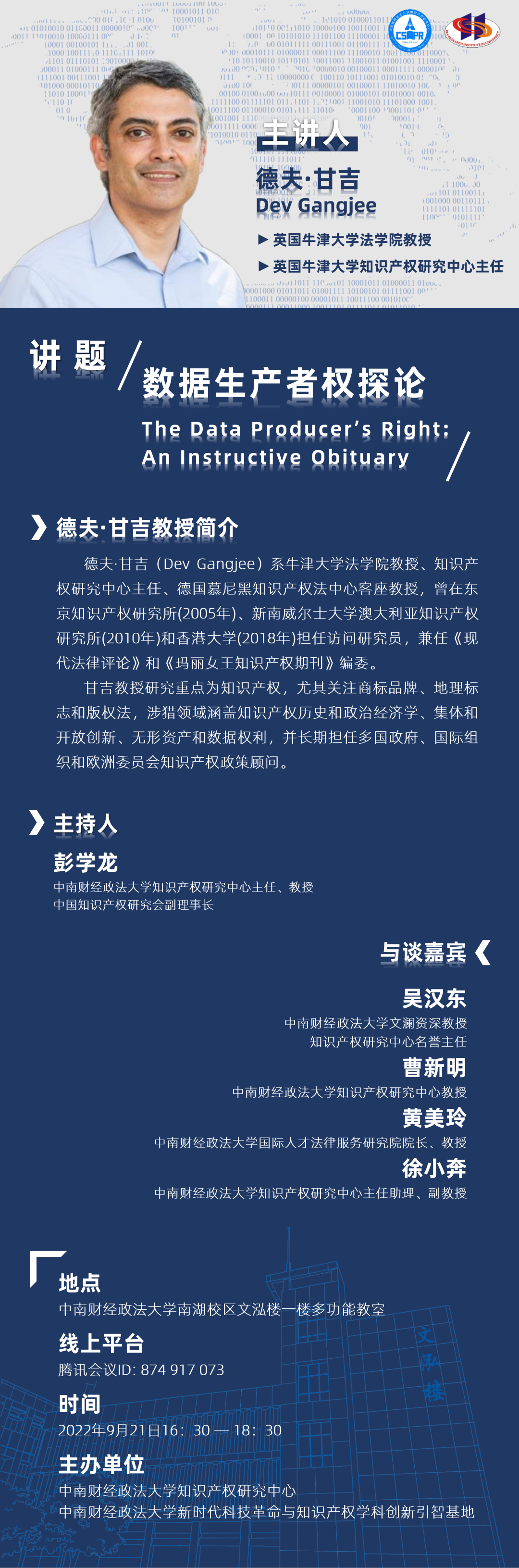 【讲座预告】Dev Gangjee:数据生产者权探讨