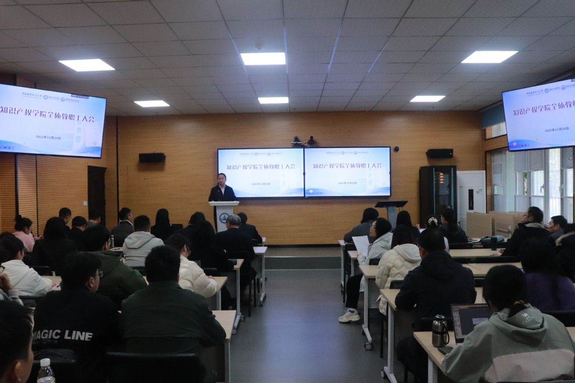 11月20日下午,知识产权学院召开全体教职工大会,集中部署学习宣传贯彻党的二十届四中全会精神、“平安留学”教育、师德师风建设、消防安全等重点工作。知识产权学院党政领导及全体教职工参加会议。会议由知识产权学院党委书记曹吉安主持。
