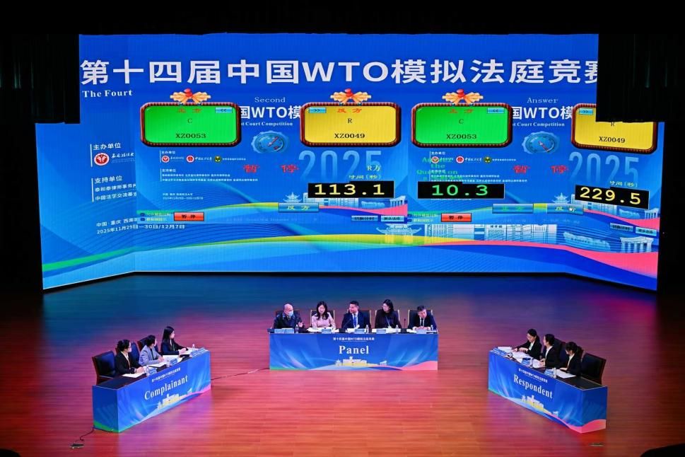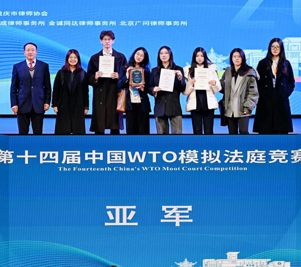 2025年12月7日,我校代表队在第十四届中国WTO模拟法庭竞赛中斩获全国亚军,创下我校在此项权威赛事中的历史最佳成绩。此次比赛由国际法学院带队组织参与,队员来自国际法学院、法学院和知识产权学院,我院陈默副教授参与指导。