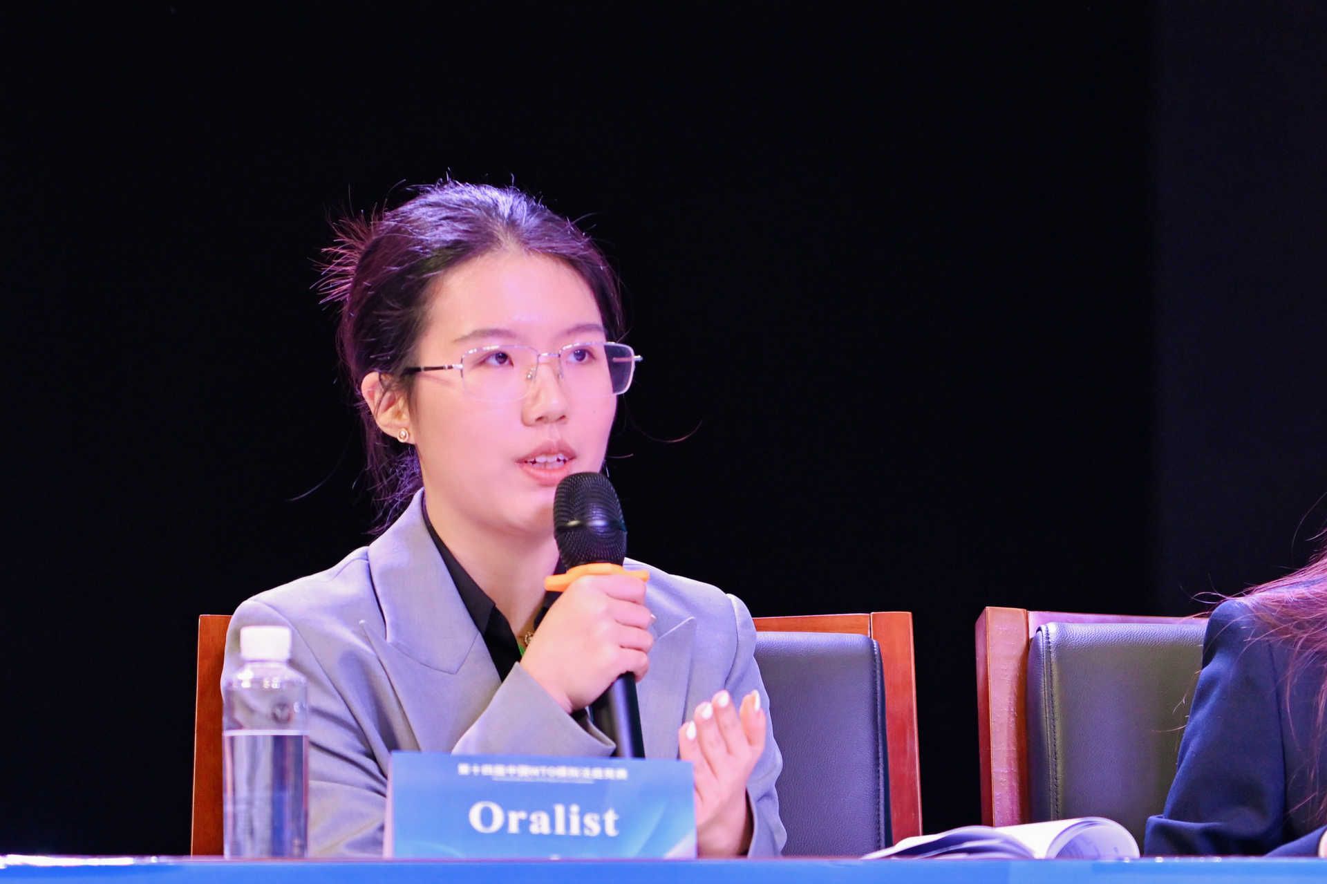 我院2023级本科生董媚楠在比赛中表现优异。作为团队队长,她统筹全局,从暑期集训的计划制定,到赛前模拟的细节打磨,始终以高度的责任心凝聚团队力量;作为核心申诉方庭辩员,她站上决赛的最高舞台,用专业与自信展现知产学子的风采。面对赛题中复杂的法律争议,董媚楠充分发挥知识产权专业优势,将课堂所学与实战需求深度融合。庭辩现场,她逻辑清晰地拆解法律关系,用流利的英文阐述观点,面对评委的尖锐提问沉着应答,敏锐捕捉对方论证漏洞并精准反击,每一个环节都展现出超越年级的成熟与专业,成为团队夺冠的关键力量之一。赛后,董媚楠分享道:“从资料搜集到书状撰写,再到模拟庭辩,每一步都充满挑战,但团队的凝聚力让我们越挫越勇。”