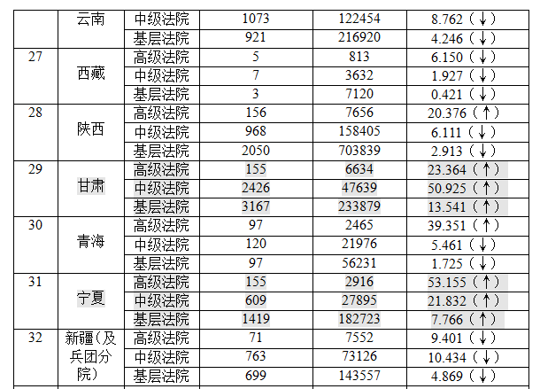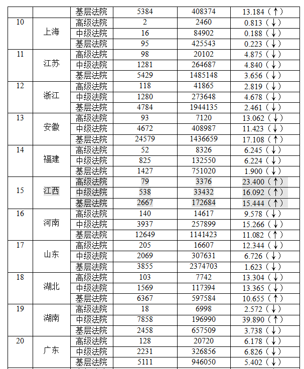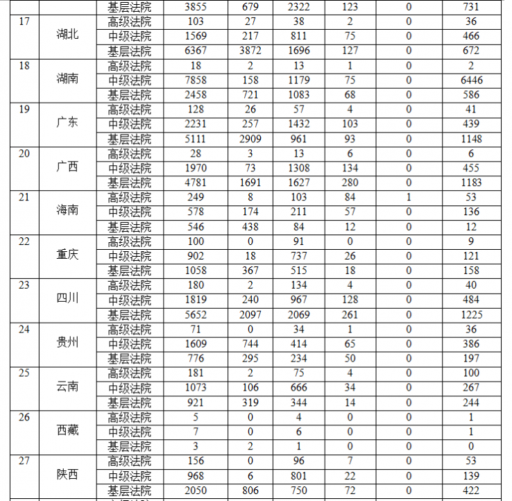 本文的经验性材料主要源于“中国裁判文书网”(http://wenshu.court.gov.cn/)以及S省的高级法院、中级法院(3个,分别编号从Z1至Z3)和基层法院(6个,分别编号从J1至J6)。“中国裁判文书网”是目前国内法院裁判文书上传数量最大的官方网站,文书的时间段主要集中在近几年,——2013年以前的文书也有部分上传,并且裁判文书的数量每天都是动态变化着的。S省位于中国东部,经济发展水平居于全国前列。3个中级法院和6个基层法院,不仅在地理位置上分处S省的南部、中部和北部,在经济发展水平上也处于S省所辖地市排名的前端、中部和后部。