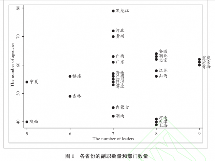 按照政府组织法和通行惯例,一级辖区政府往往会设立一位行政首长(如省长、市长、县长),并配备若干副职(如副省长、副市长、副县长)。中国各级政府都普遍存在部门林立的现象,一级政府会设置上百个行政机关、事业单位和群团组织。尽管组成部门或工作机构的数量一般不超过60个,[1]但加上各类准行政机构却可以达到百余个。这使组织的管理幅度远超最高管理者的能力范围,不得不设置多个副职作为分管领导。这些分管领导各自负责或联系不同的职能及其对应的部门,并对这些部门的运作和结果负有领导责任。对此值得关注的问题包括:这些副职是如何被安排分管不同部门的 副职分管的部门数量和职能有何特征 哪些因素会影响副职分管的特征 分管领导怎样影响部门之间的关系这种分管型组织架构会导致官僚制的内在矛盾,使分管领导与机构管理的关系难以理顺。一方面,虽然历次机构改革减少了行政机关的数量,但是却没有使事业单位等组织的数量减少。[2]机构改革也存在明显的反反复复现象,因此并没有使部门数量有实质性下降。[3]一般来说,一个地级市政府直管、联系或协管的各类部门动辄上百个,甚至达到两百个。如果按照“一正四副”的理想设计来安排领导职数,很难对市直部门进行有效领导。这样一来,就需要配备适当数量的副职,以便于分管领导如此庞大的官僚体系。与此同时,设置副职和非领导职务,也是为了畅通官员晋升渠道,使其有足够的晋升激励执行上级政策。[4]
