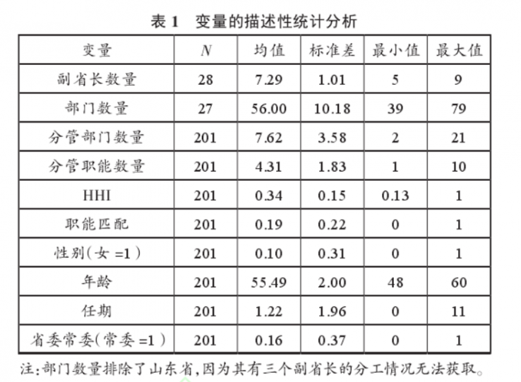 本文关注的分管形式主要是直接分管和部分联系工作的政府部门,而不包括涉及联系工作的其他党群团部门。为此,我们将关注如下变量。