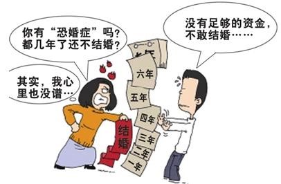 婚姻的本意是带给人幸福,但不是所有的婚姻都是如意的。当代社会逐年增高的离婚率,父母婚姻失败的阴影,媒体对一些影视明星出轨、离婚等新闻“打鸡血”般的报道,网络上对于婚姻生活烦恼的大量吐糟,使他们对婚姻望而却步,产生了恐惧的心理。这些青年人尽管期待爱情,但恐惧婚姻,把婚姻看作爱情的坟墓。
