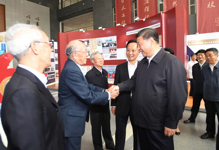 暮春时节,位于北京市昌平区的中国政法大学校园内满目青葱、一派生机。上午9时20分,习近平在校党委书记石亚军、校长黄进陪同下,首先来到逸夫楼一层大厅,参观校史及成果展。一张张图片,一件件实物,见证了几代党和国家领导人对中国政法大学和中国法治建设的关心和支持,展示了中国政法大学的发展历程,习近平不时驻足观看,询问有关情况。他对中国政法大学在人才培养、学术研究、社会服务、文化传承、国际交流合作、特色课程教育等方面取得的成就表示肯定,希望学校总结经验、改革创新,更好整合资源,更好找准着力点,把教学、科研、育人各项工作做得更好。