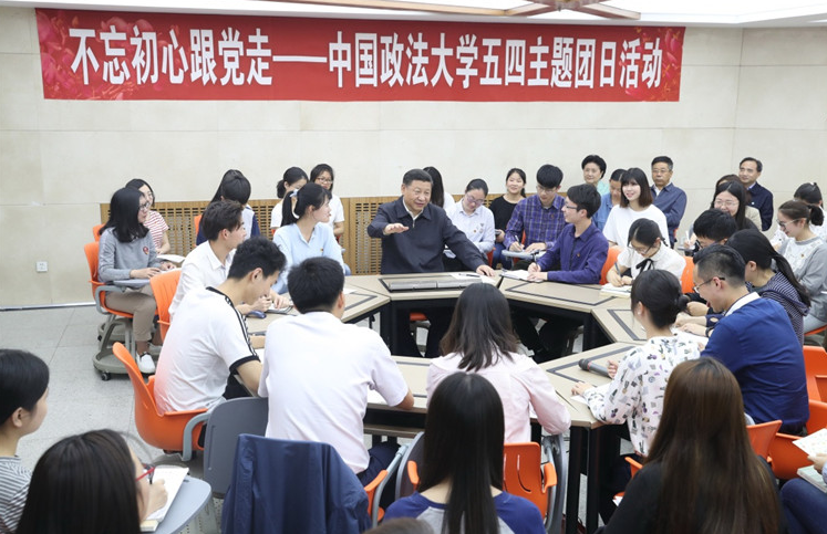 5月3日,中共中央总书记、国家主席、中央军委主席习近平来到中国政法大学考察。图为习近平同中国政法大学师生和首都法学专家、法治工作者代表、高校负责同志座谈。新华社记者李学仁 摄