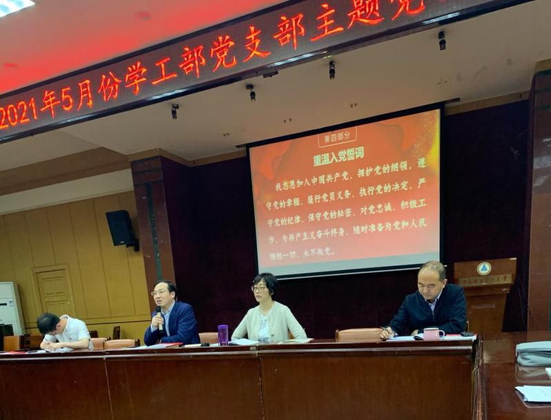 5月20日上午,学工部党支部在文潭楼报告厅开展了支部主题党日活动。此次支部活动主题为“学史崇德铸忠诚、赓续精神葆本色”,由学工部副部长葛明主持,第四党小组负责组织。