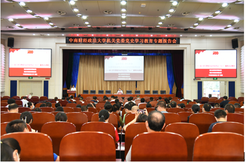 为深入推进机关党委党史学习教育走深走实,学习贯彻习近平总书记在庆祝中国共产党成立100周年大会上的重要讲话精神,引导机关全体党员学党史、悟思想、办实事、开新局,9月18日上午,机关党委党史学习教育专题报告会在文泉楼报告厅举行。湖北省委宣讲团、武汉市委宣讲团成员、校党委常委、宣传部部长、机关党委副书记周巍以《以史为鉴、开创未来 在中华民族伟大复兴征途中奋勇前进》为题为机关全体党员作专题报告。机关党委书记周佳玲主持报告会。