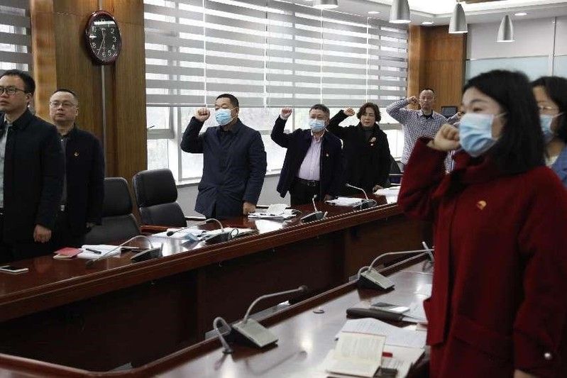 随后,姜孝兵同志带领全体党员学习《中国共产党章程》第七章《党的纪律》,林晶晶同志带领大家重温入党誓词。全体党员交纳1-3月党费。