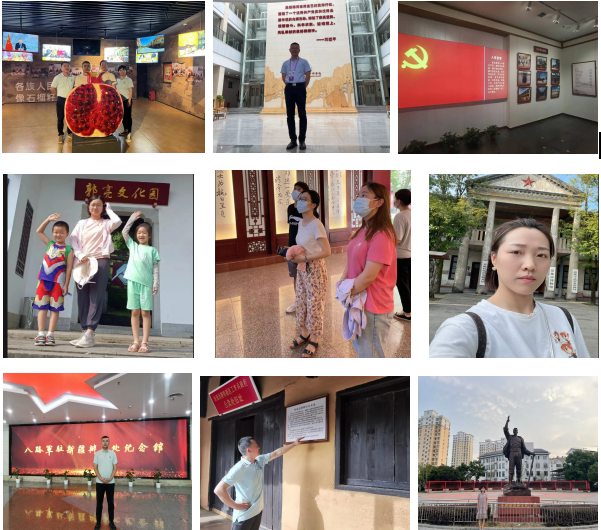 在“行”的环节,根据支部的整体安排,支部党员充分利用假期时间,参观红色教育基地、重温红色革命记忆。余小朋部长带队参观了新疆莎车县博物馆,追忆革命先辈的英勇事迹,领略中国共产党人带领人民进行革命、改革、建设的华丽篇章;葛明副部长、刘晓燕副部长、范献龙副部长走进焦裕禄干部学院,亲身学习亲民爱民、艰苦奋斗、科学求实、迎难而上、无私奉献的焦裕禄精神;石凌副部长实地参观了太原解放战役纪念馆,瞻仰英烈丰碑、缅怀革命先烈,从中汲取精神滋养和前行力量。支部有的党员重走重温井冈山红色革命基地、辛亥革命博物馆、恩施抗战历史陈列馆等,有的现场参观了中共三大会址纪念馆、八路军驻新疆办事处纪念馆、大别山革命历史纪念馆、郭亮故居、东西湖围垦文化广场等。通过追寻革命先辈光辉足迹,不断深化党员学习教育,增强党员的责任感、使命感;更要传承革命先烈遗志,以革命先辈为榜样,激发出干事创业激情,立足岗位、履职尽责,为推动学校建设发展再立新功。