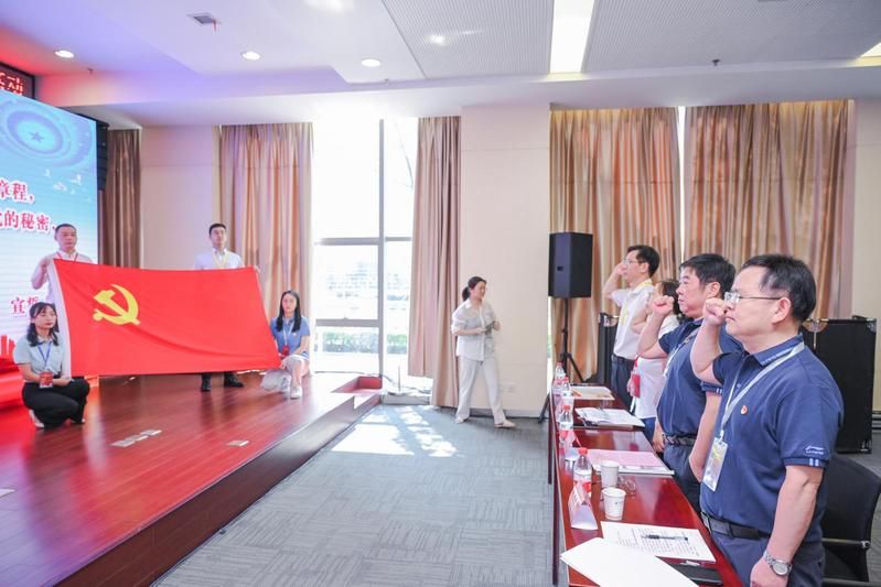 参观结束后,全体人员前往一楼会议室开展主题研讨活动。活动开场,全体党员面向党旗,重温入党誓词。