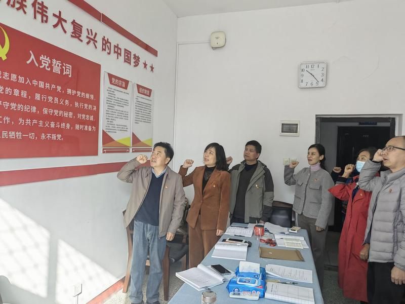余启军同志带领全体党员同志重温入党誓词。陈光华同志带领大家学习《中国共产党章程》第五章《党的基层组织》。