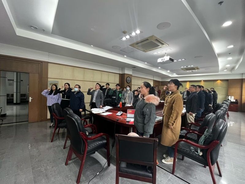 在规定动作环节,科研部、社科院党支部纪检委员杨苗同志带领全体党员重温入党誓词,学生党支部书记曹湘珺同志带领大家诵读《中国共产党章程》第六章《党的干部》。