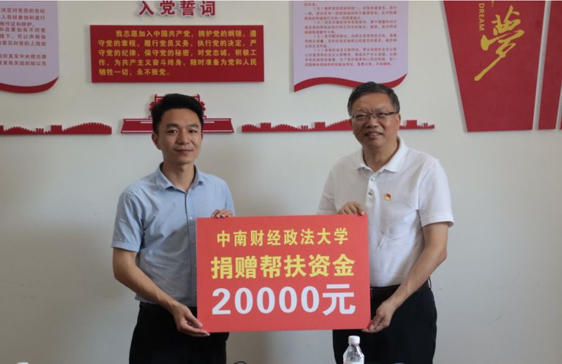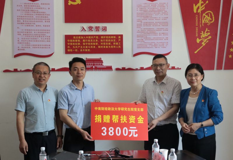 覃红代表学校捐赠帮扶资金20000元;研究生院党支部和工会、妇女委员会党支部分别捐赠帮扶资金3800元和2000元。